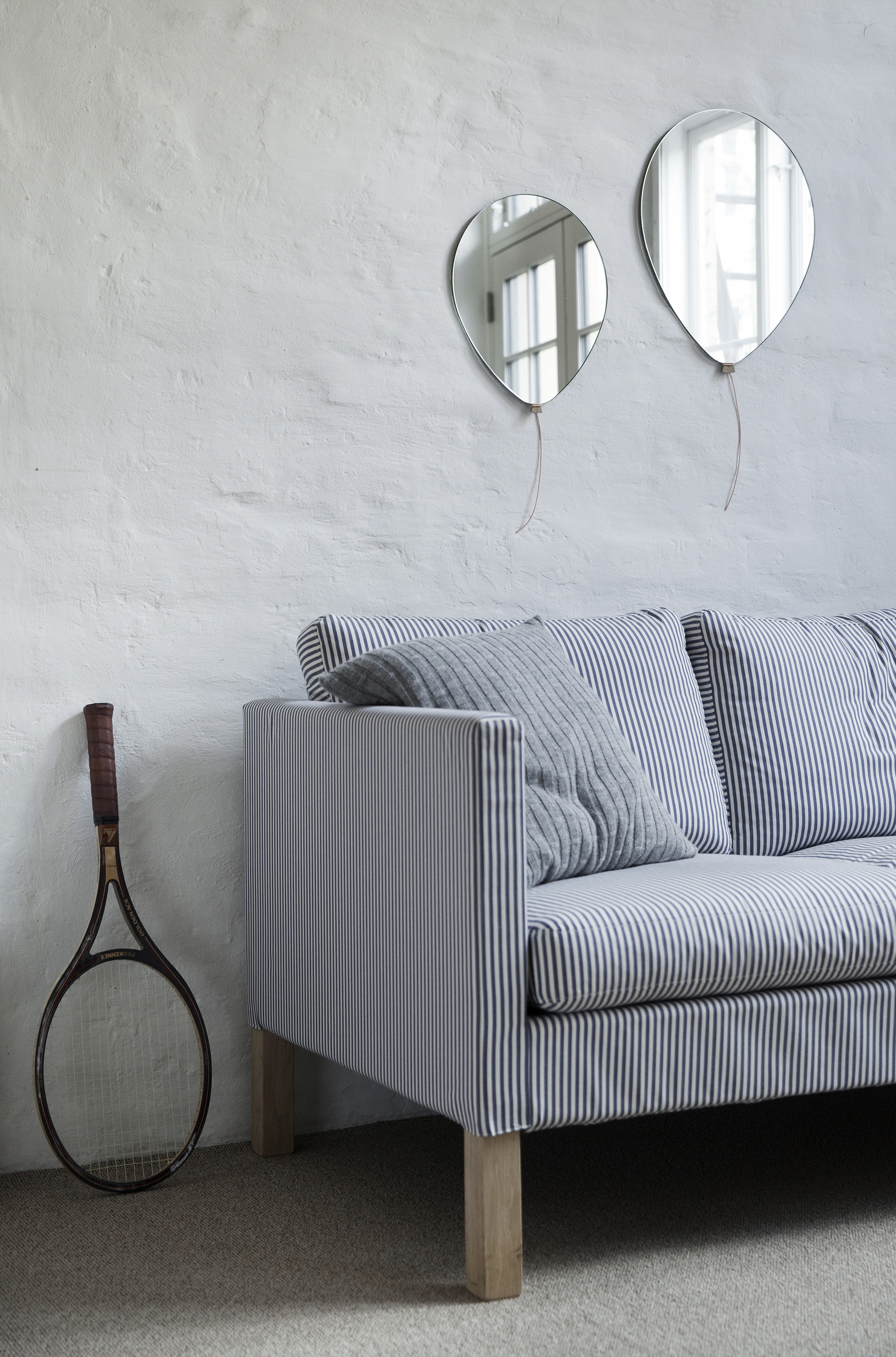 Balloon Mirror est le miroir dessiné pour ressembler à un ballon flottant. Le miroir est à la fois ludique et élégant, et il convient donc parfaitement dans les chambres d'enfants ainsi que dans le salon ou le hall d'entrée. Balloon Mirror est doté d'un verre miroir de haute qualité et de charmants détails tels que le nœud du ballon en chêne et la ficelle du ballon en cuir.