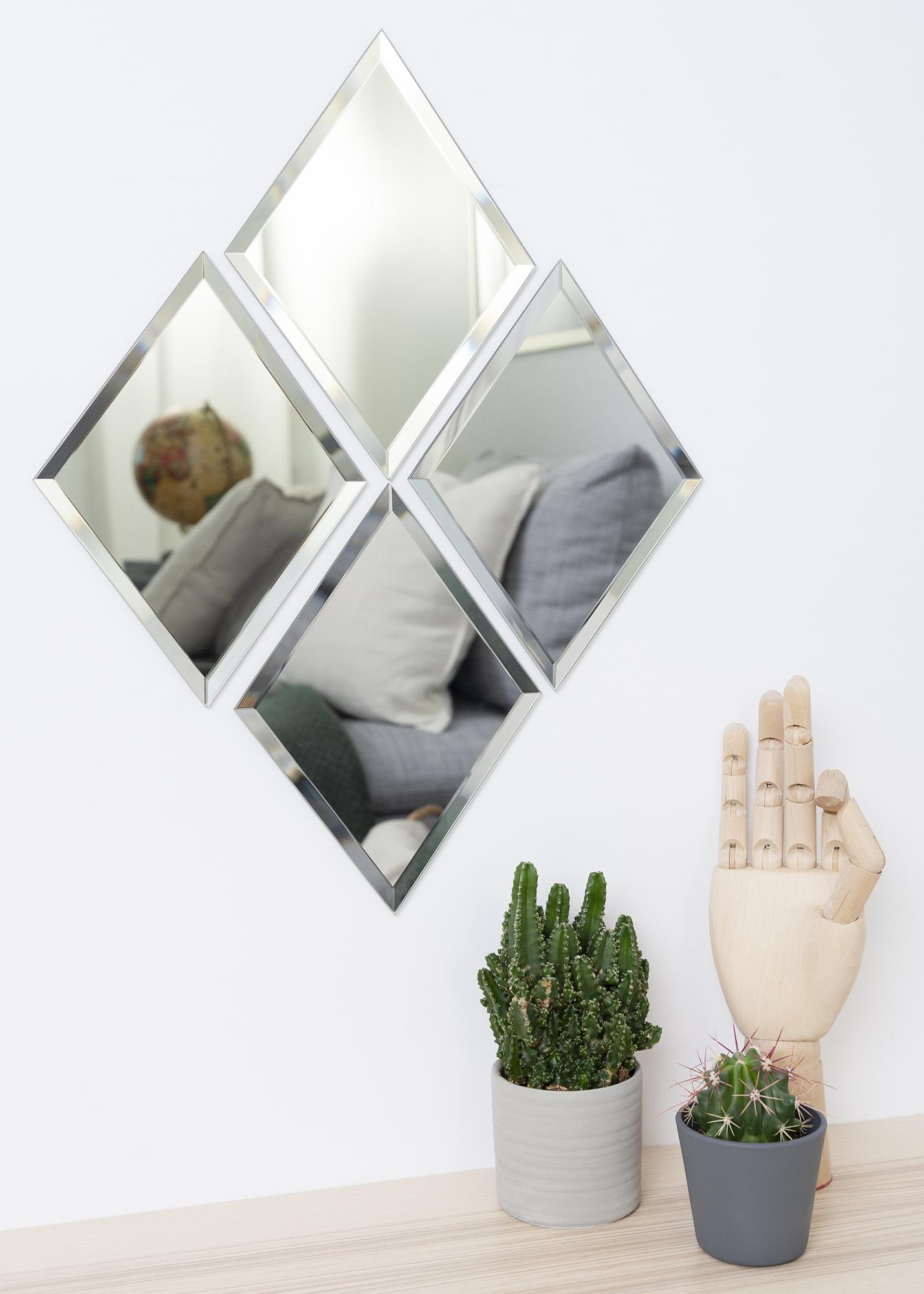 Lot de 4 miroirs élégants dans un format plus petit de House Doctor. Avec cette forme en losange, c'est parfait lorsque vous voulez créer votre style personnalisé. Les miroirs sont faciles à installer avec le ruban adhésif double face inclus et sont très faciles à positionner. Comme les miroirs sont également certifiés pour les pièces humides, vous pouvez également les utiliser dans la salle de bain.
