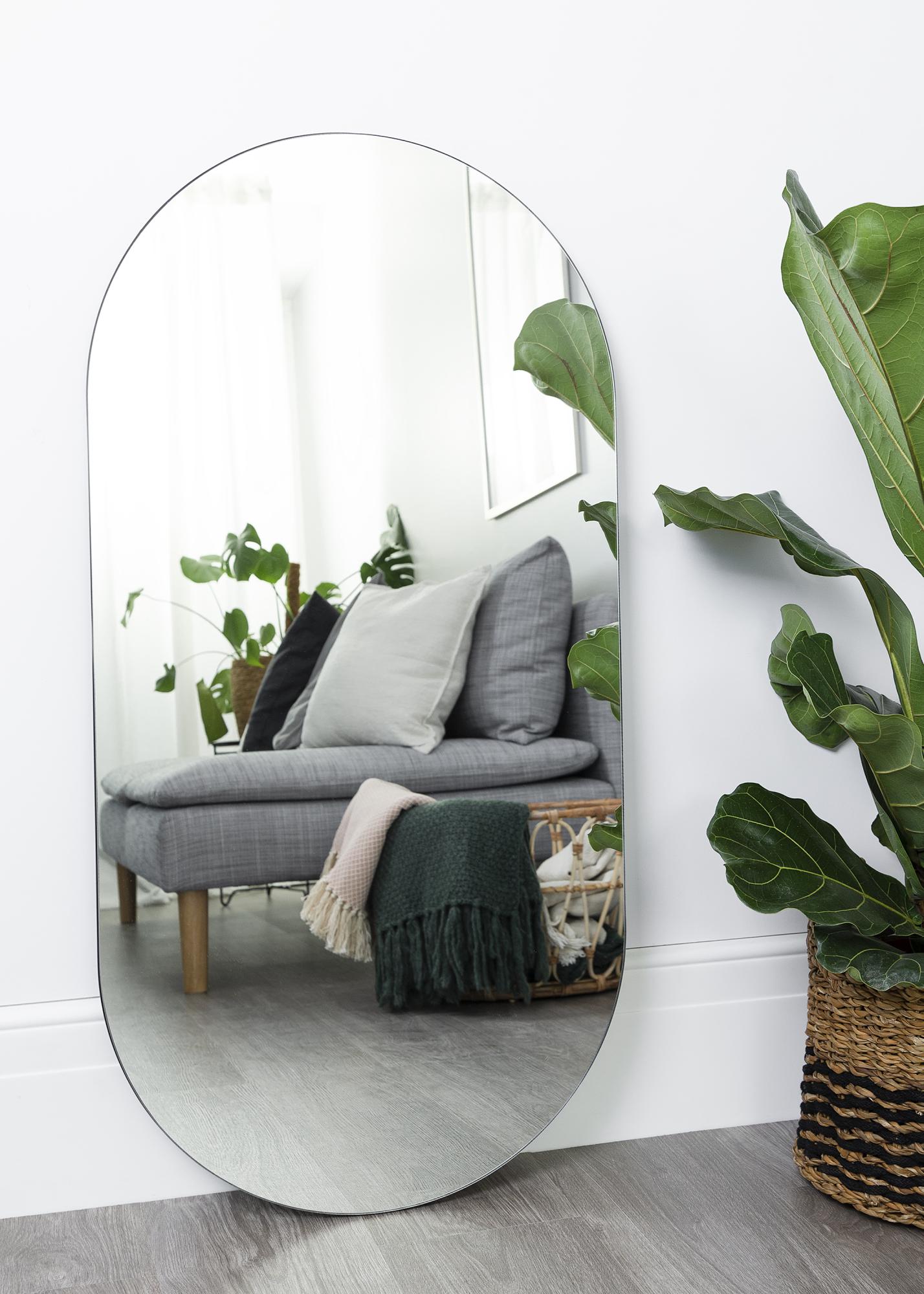 Élégant miroir ovale aux dimensions 50x100 cm de House Doctor qui peut tout aussi bien être suspendu verticalement et horizontalement. S'intègre parfaitement, par exemple, dans le hall d'entrée ou le vestiaire. Le miroir est certifié pour les pièces humides et peut donc également être utilisé dans la salle de bain.