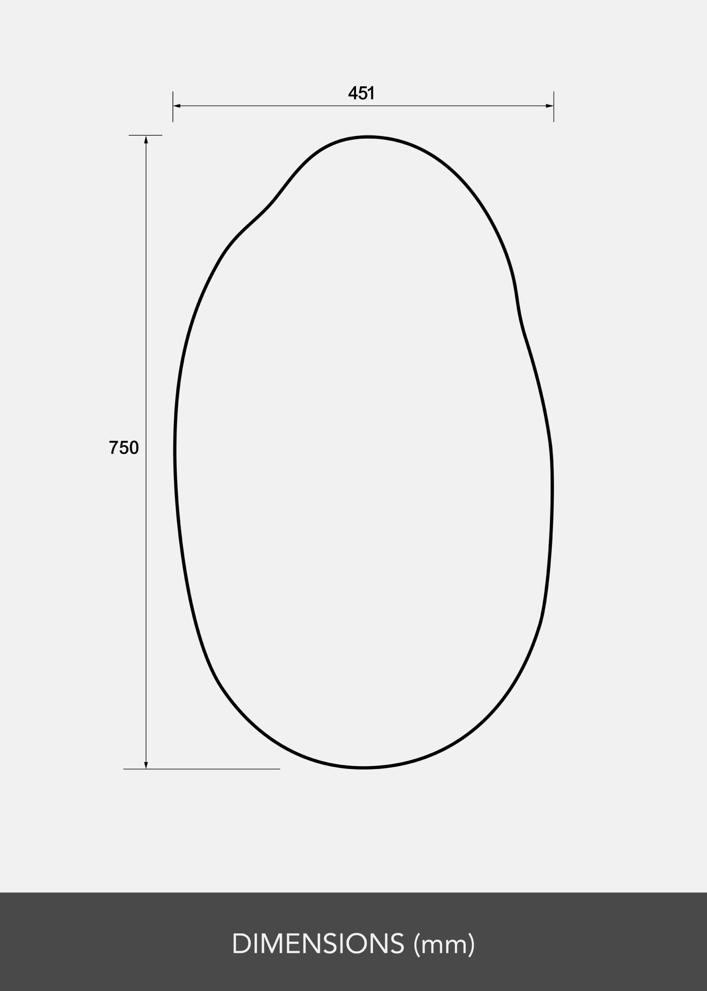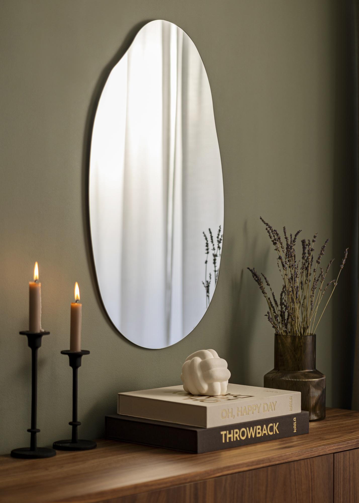 Découvrez le miroir élégant et moderne conçu pour donner à votre pièce une sensation d'espace et de lumière. Avec ses dimensions généreuses de 45x75 cm, ce miroir convient parfaitement aux petits espaces comme aux grands. Sa forme unique est ovale allongée et se transforme doucement en une forme effilée en haut, créant ainsi un profil sophistiqué et contemporain qui attire le regard.