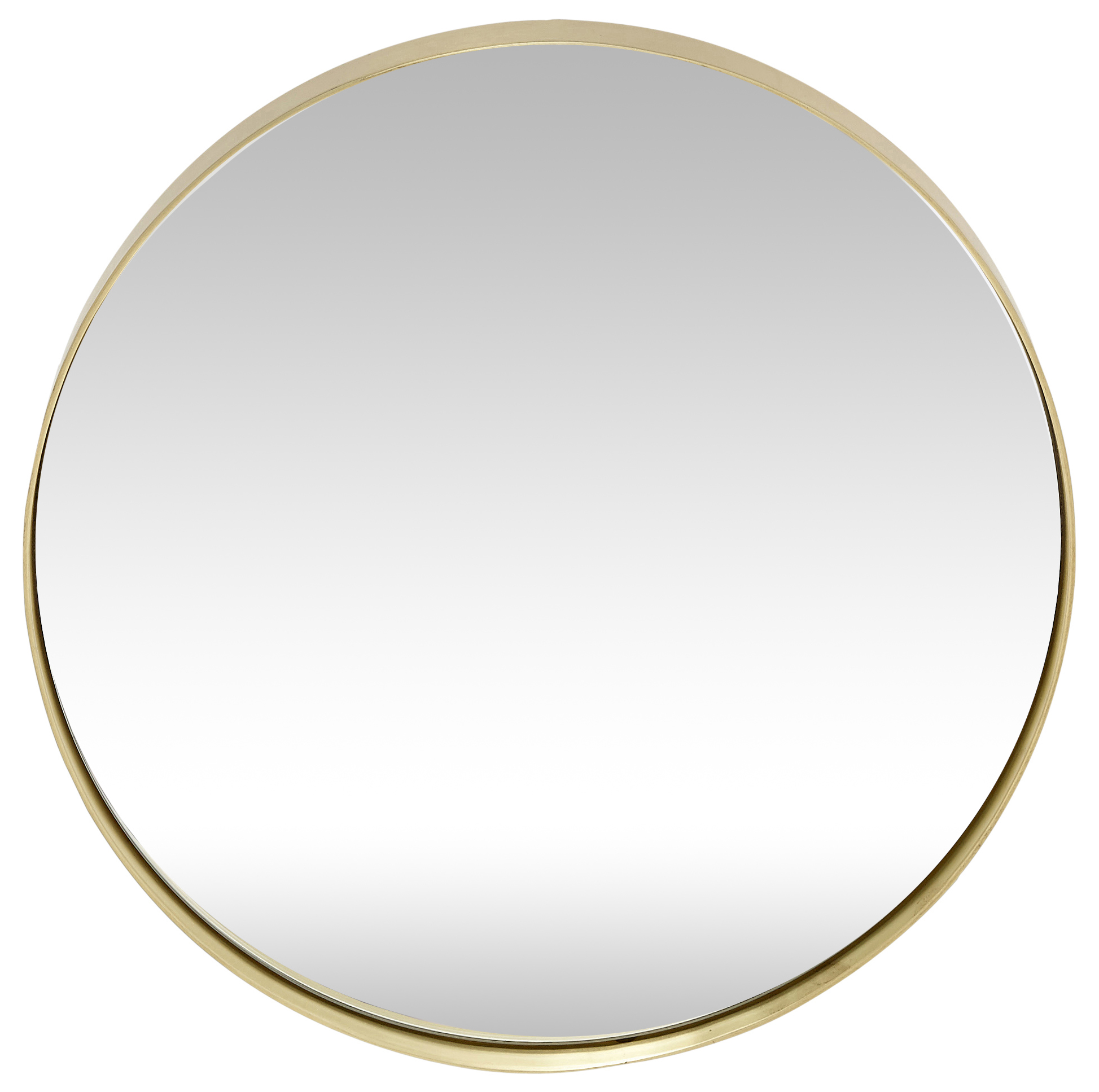 Un miroir mural rond avec une ambiance accueillante et exclusive. Le miroir est entouré d'un cadre en métal couleur laiton. Une monture fine et épurée, alors que son bord est haussé de quelques centimètres pour donner un effet chic à l'ensemble.
