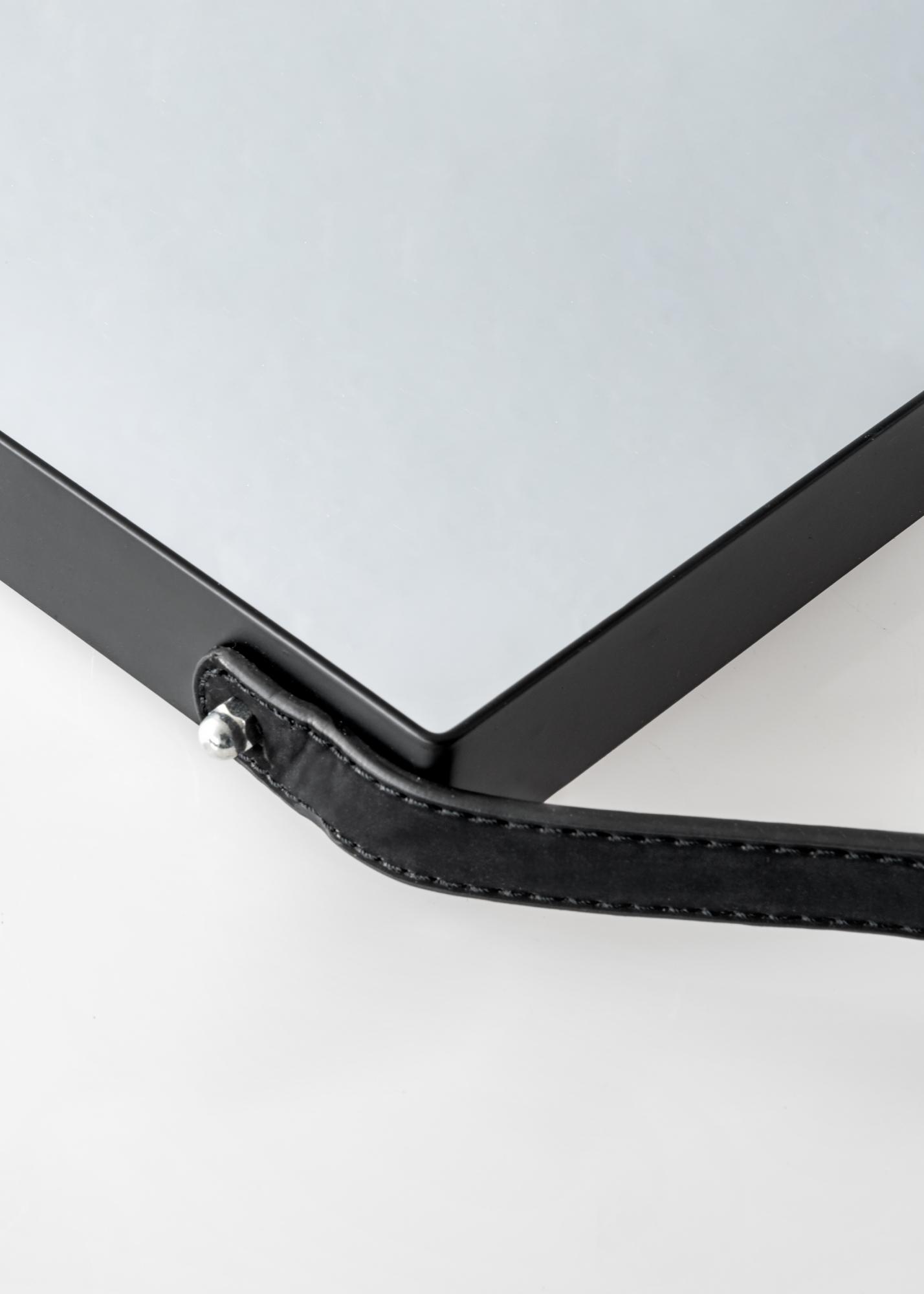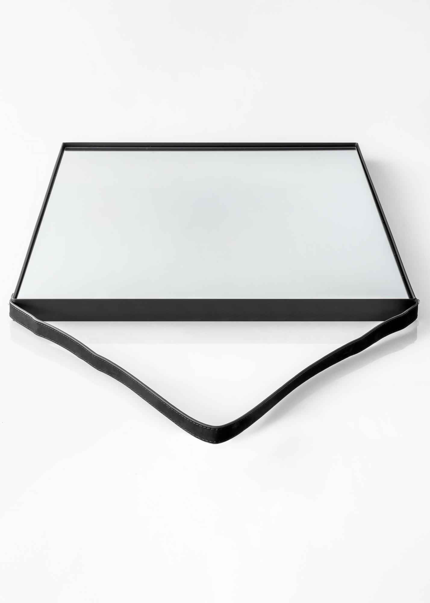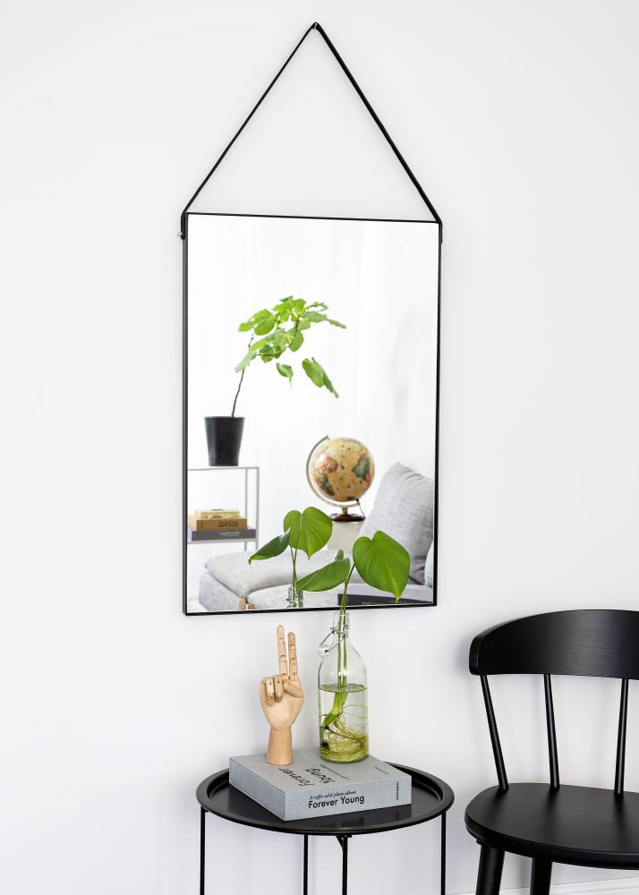 Ce miroir rectangulaire a un design élégant et moderne. Autour du miroir se trouve un cadre fin en métal noir, qui donne au miroir une sensation très épurée. En haut du miroir se trouve une bordure décorative et pratique, qui permet de suspendre facilement le miroir au mur.