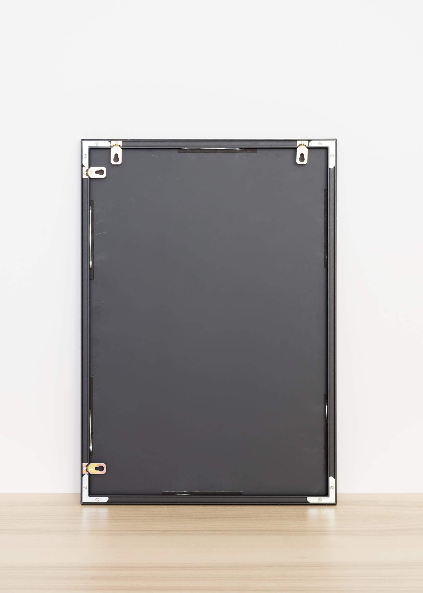 Lancer le sélecteur de cadre »Un miroir épuré au cadre en aluminium noir. Le miroir est équipé de supports muraux judicieux, ce qui le rend facile à accrocher.