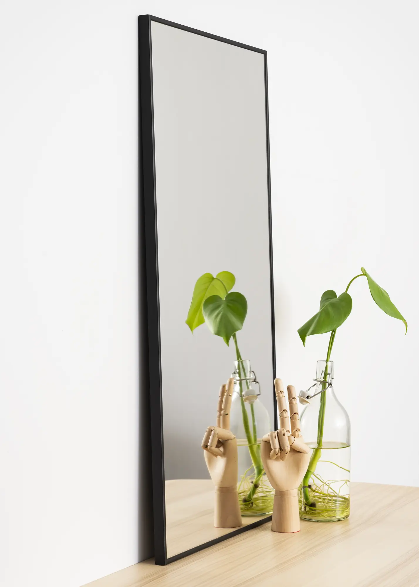 Ugs:Miroir classique avec cadre noir, qui s'accroche facilement au mur, grâce à des supports muraux judicieux.