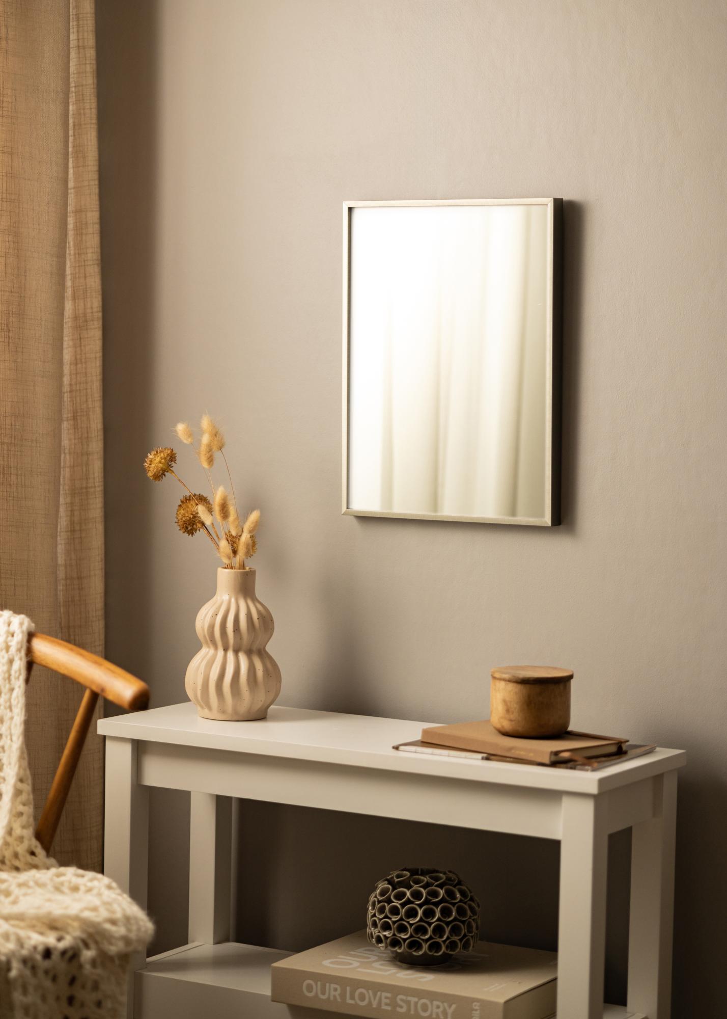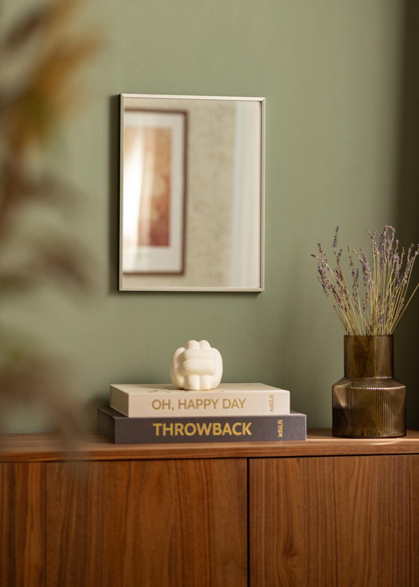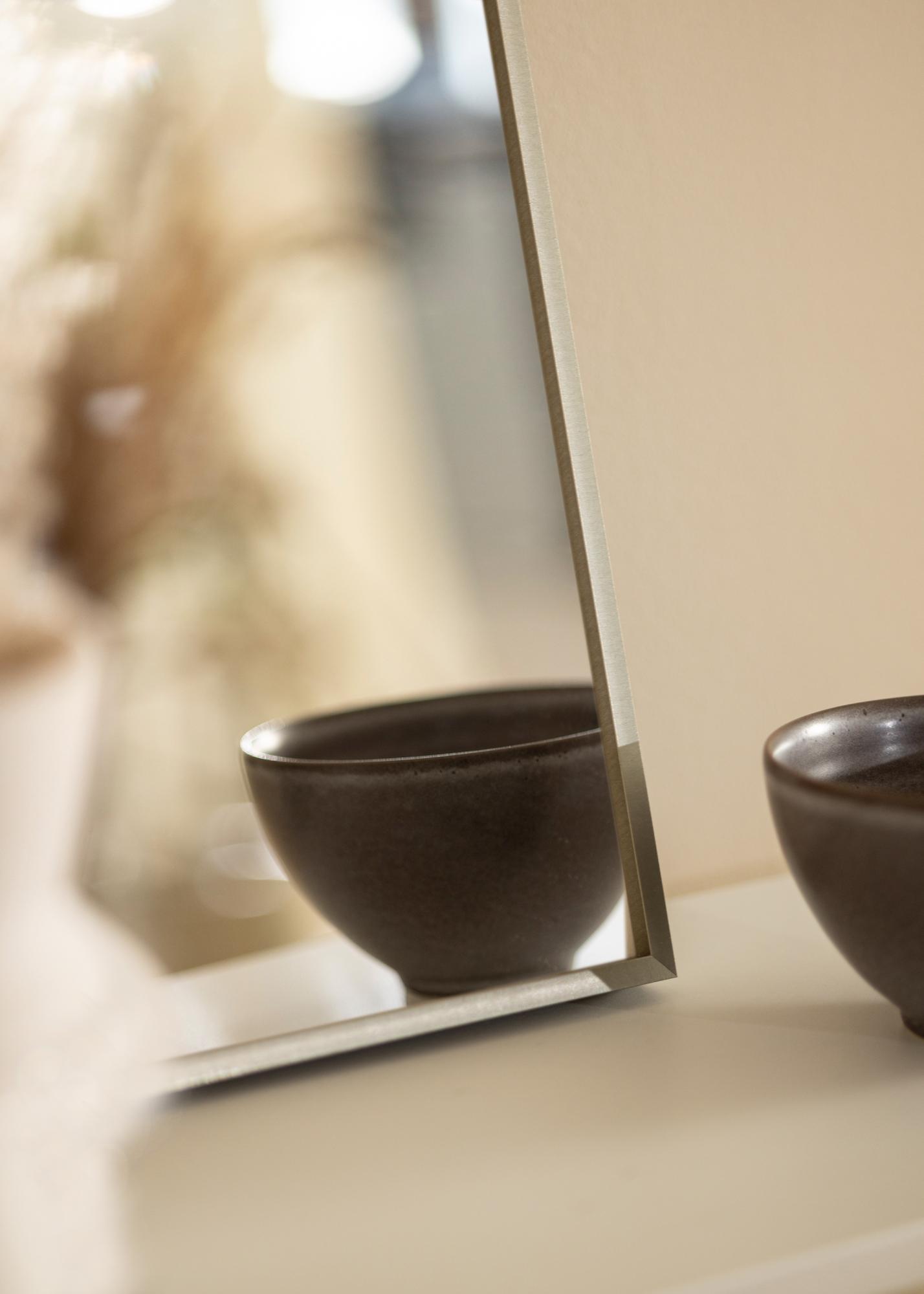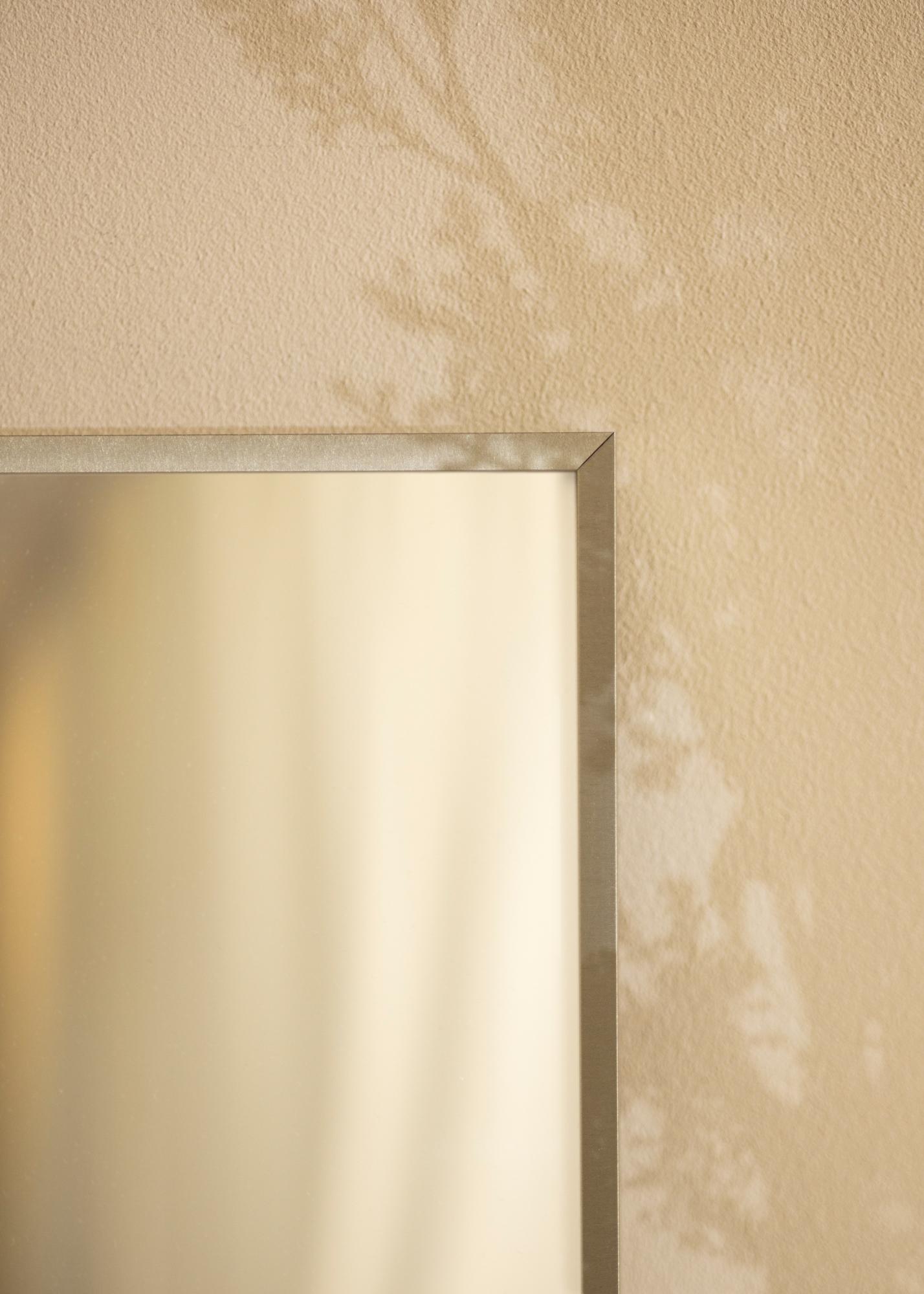 Ce miroir a une belle couleur argentée qui donne une impression intemporelle et sophistiquée. Le cadre a une largeur de 7,8 mm et est fabriqué en aluminium, ce qui offre une construction robuste et durable tout en conservant une sensation légère et maniable. La profondeur de 25,9 mm permet au miroir de se fixer solidement au mur et donne un aspect élégant.