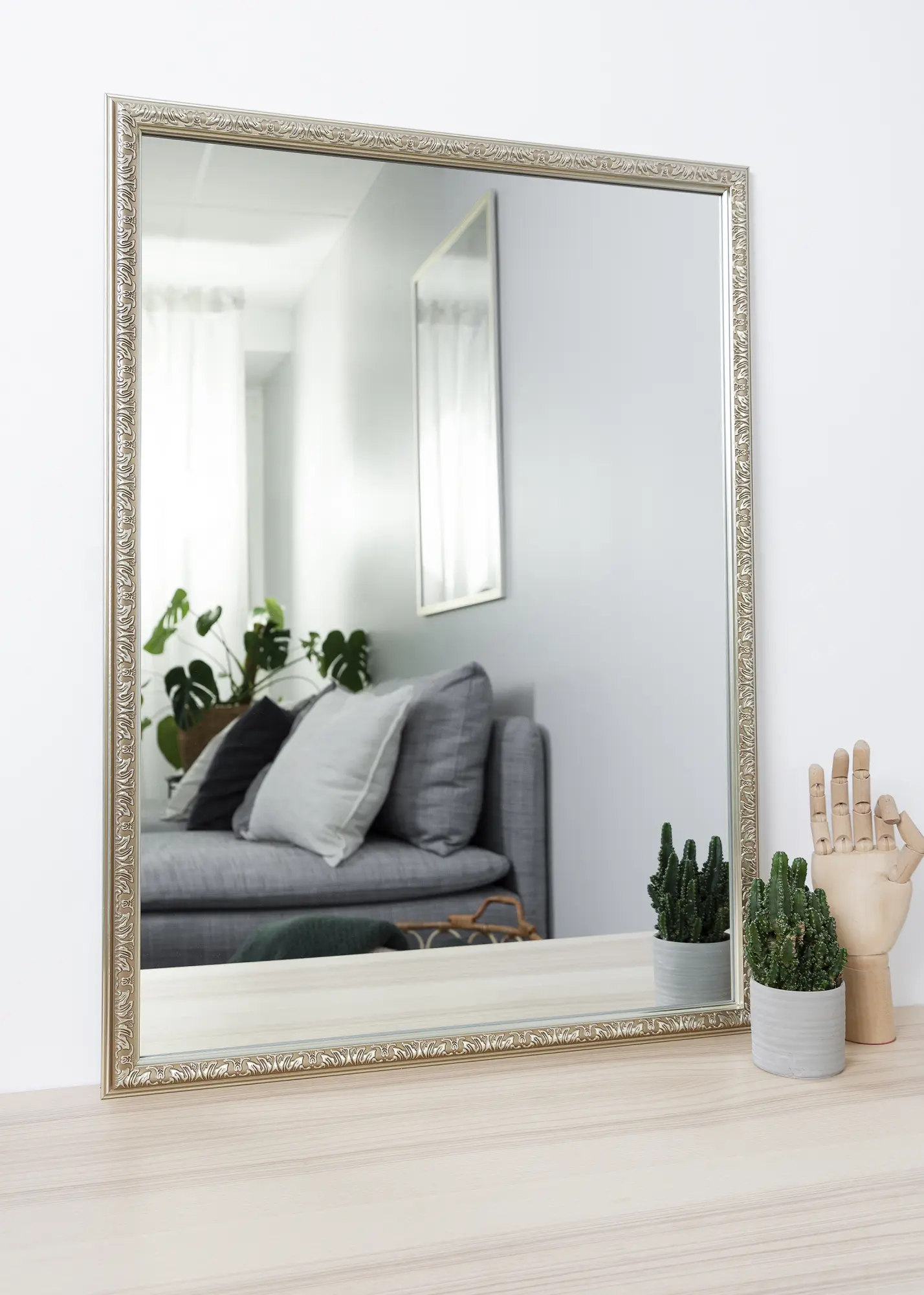 Nost Argent est le nom d'une série de miroirs muraux. Le cadre est richement décoré de symboles irréguliers qui donnent une impression légèrement mystérieuse.