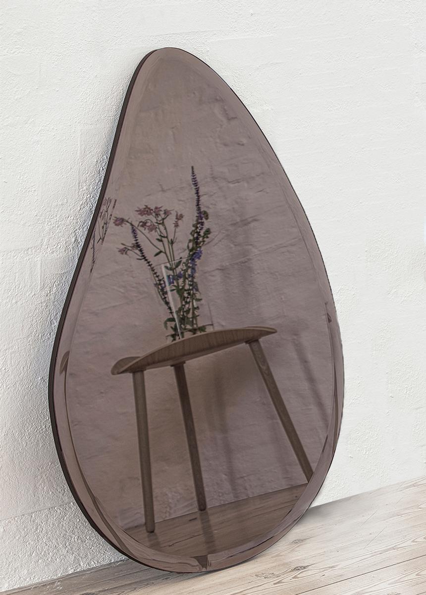 Il s'agit d'un miroir en forme de goutte avec un verre miroir teinté d'une couleur bronze. La couleur est parfaite pour un bel effet dans la pièce dans laquelle vous choisissez de le placer - il s'intègre n'importe où dans une maison tendance.