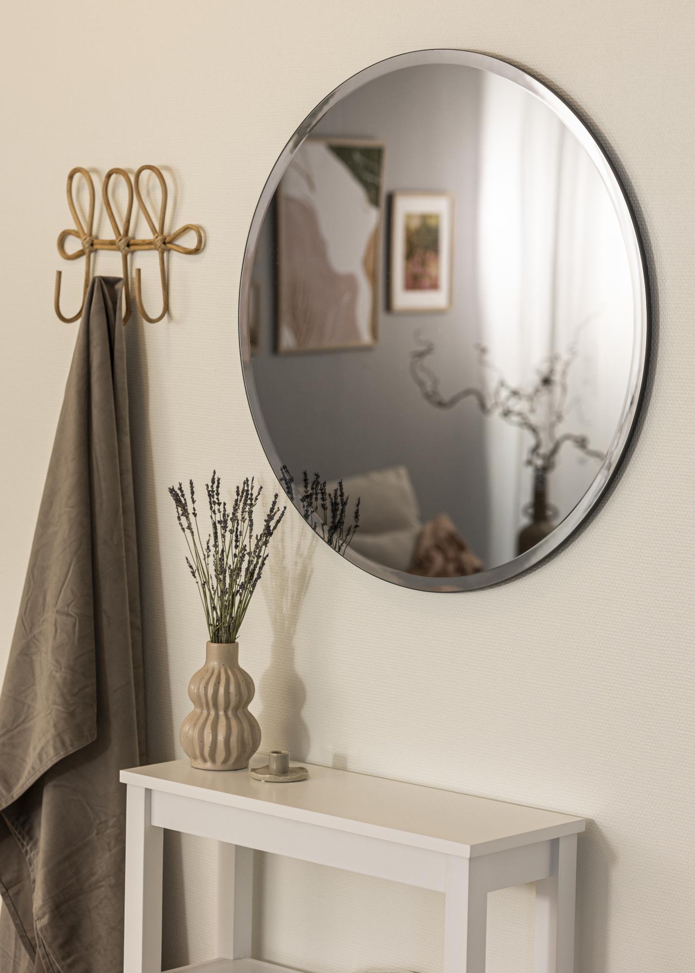Ce miroir rond du danois Incado n'est pas seulement tendance et récent, c'est aussi le type de miroir que l'on peut garder toute sa vie sans s'en lasser. Il a un verre miroir teinté dans une belle couleur grise et le bord facetté donne immédiatement à la pièce dans laquelle vous le placez une odeur de luxe !