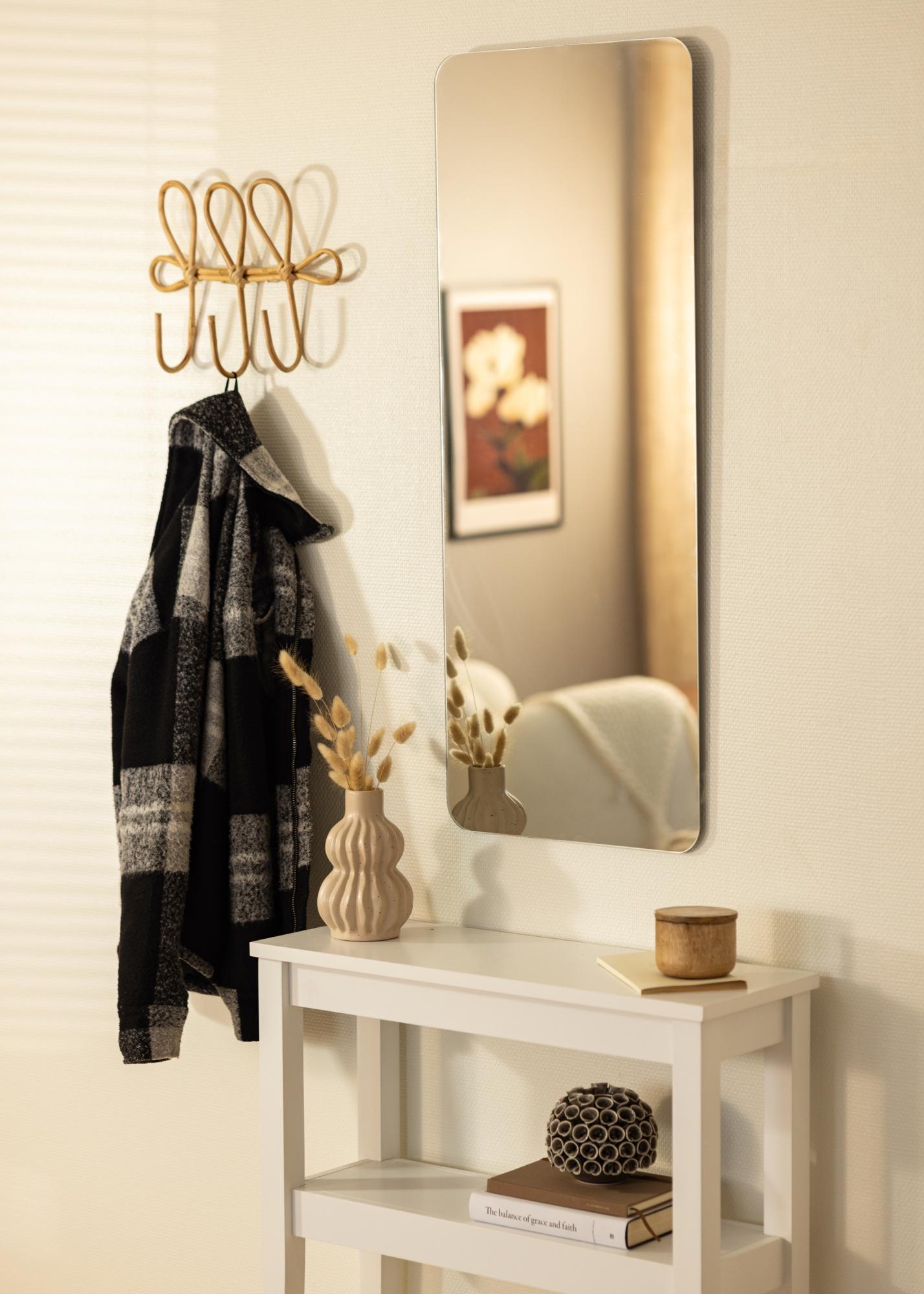 Découvrez l'élégance épurée de notre miroir rectangulaire, conçu pour compléter parfaitement chaque pièce de votre maison. Avec ses coins supérieurs arrondis, le miroir crée une atmosphère moderne et sophistiquée, tout en ajoutant lumière et espace à votre décoration. Ses dimensions de 40x100 cm en font un élément pratique et décoratif qui convient parfaitement aussi bien dans l'entrée que dans la chambre.