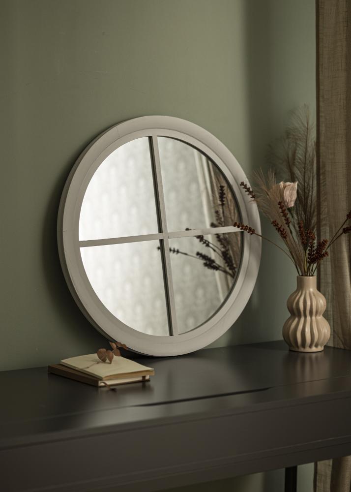 Miroir rond Window Gris 60 cm Ø