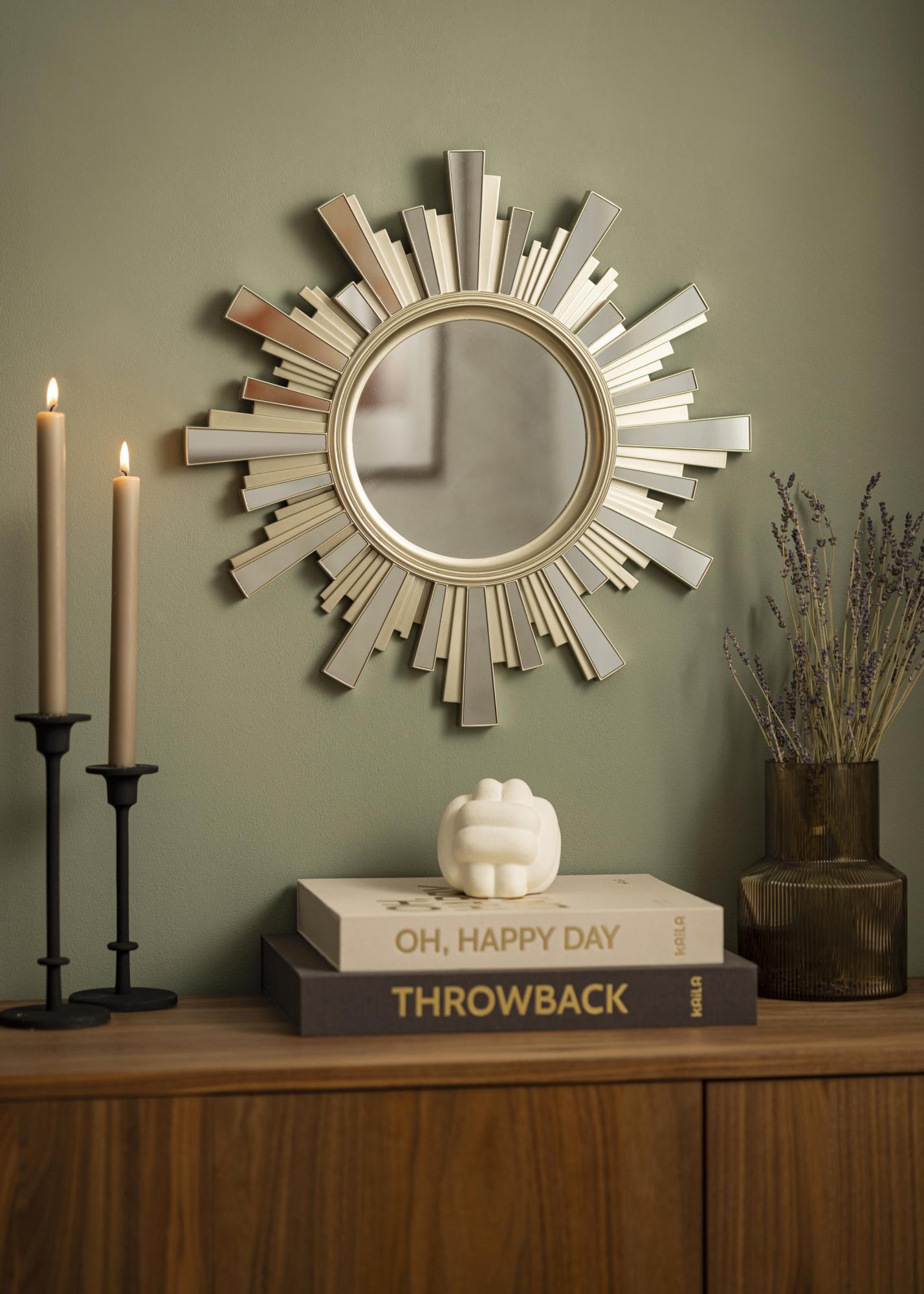 Placez le miroir dans un endroit où il peut être vu et où il remplit sa fonction décorative - dans le salon, dans la salle à manger ou peut-être dans le hall d'entrée. Le miroir solaire peut être posé seul sur le mur ou avec une autre belle décoration murale.