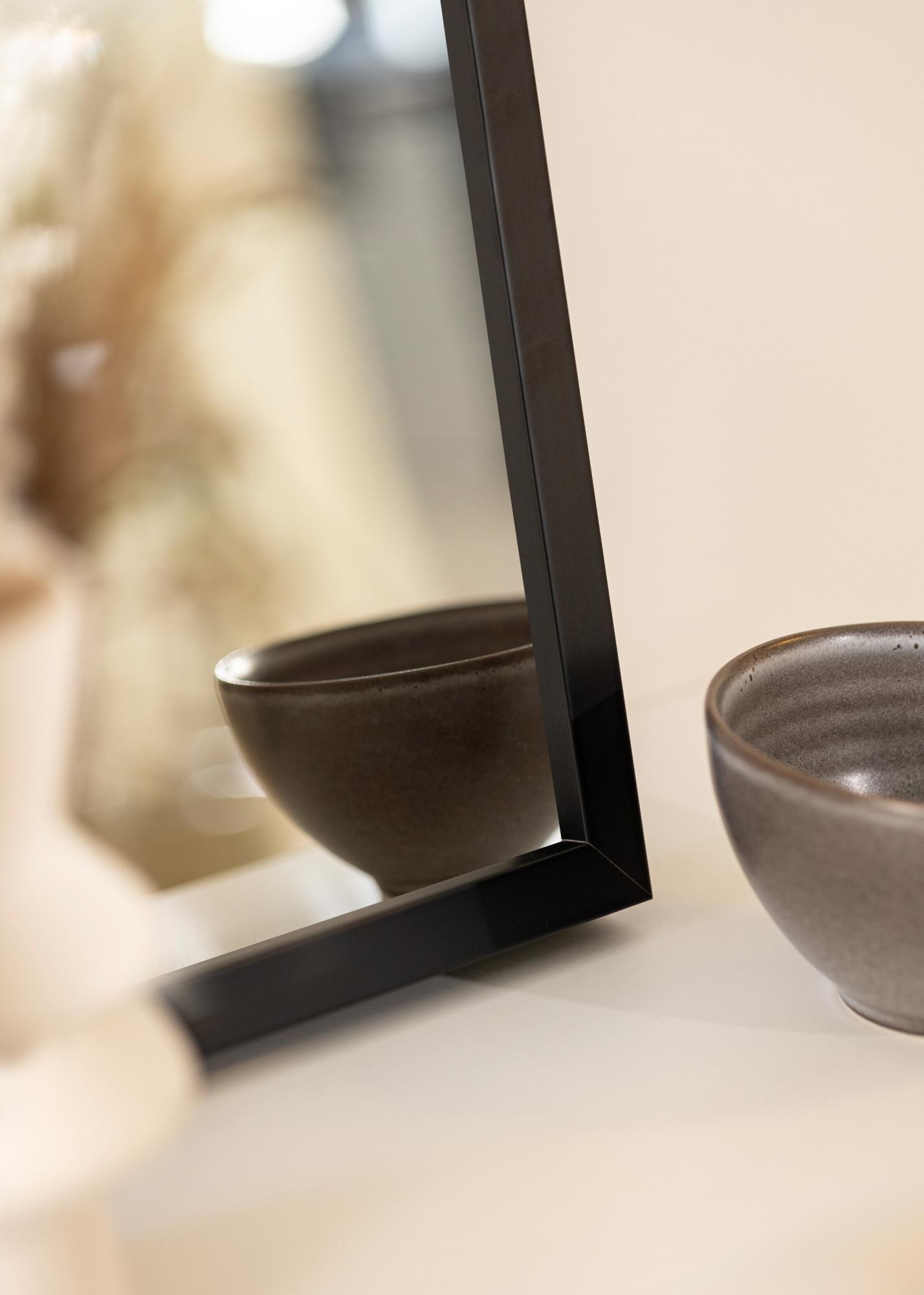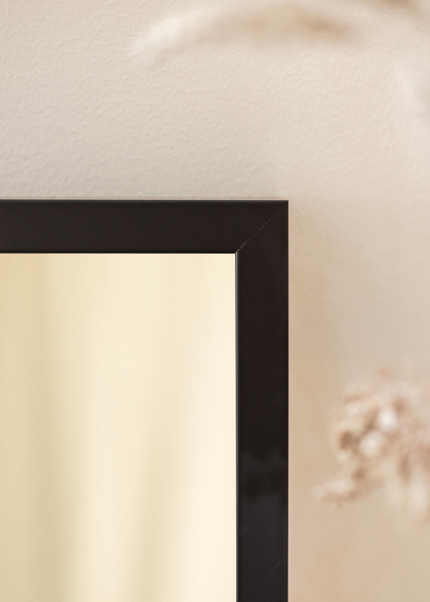 Le cadre du miroir Thor Noir a une largeur de 20 mm et offre un encadrement discret mais néanmoins clair. La couleur noire du cadre crée un beau contraste avec le verre du miroir et contribue à un look sophistiqué. Avec une profondeur de 40 mm, le miroir a une sensation de robustesse sans être encombrant, ce qui le rend facile à placer même dans des pièces plus petites ou des espaces restreints.