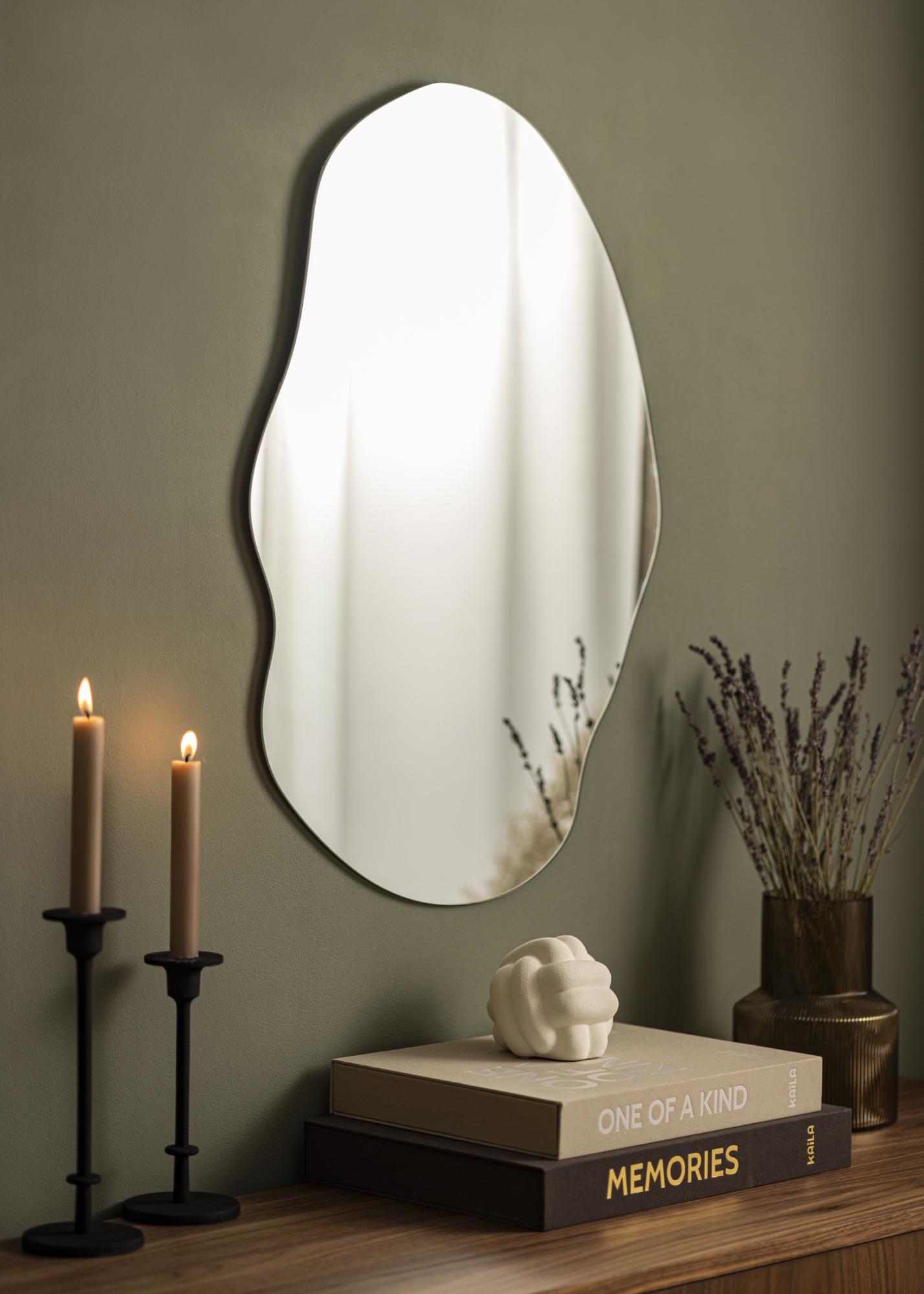 Vous disposez de beaucoup de formes classiques dans votre intérieur, comme des tables carrées ou des tapis ronds ? Alors, un miroir dans une forme différente sera un excellent supplément pour créer plus de dynamisme dans la pièce. Wide Cloud est un miroir mural de 50x70 cm à la forme inspirée par les nuages. Sa forme magnifiquement ondulée est très élégante et le fin verre réfléchissant du miroir accentue encore plus son esthétisme. La forme organique du miroir offre un doux contraste avec les lignes droites de la pièce et crée un ensemble harmonieux.