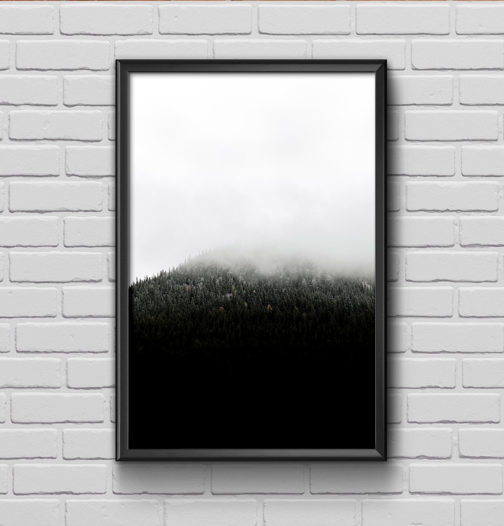 Une photographie de nature paisible d'un sommet montagneux boisé reposant sous un épais brouillard. Un poster calme et harmonieux avec des contrastes nets et des lignes douces. N'hésitez pas à le combiner avec plusieurs de nos motifs fantastiques sur un plus grand mur de tableaux.