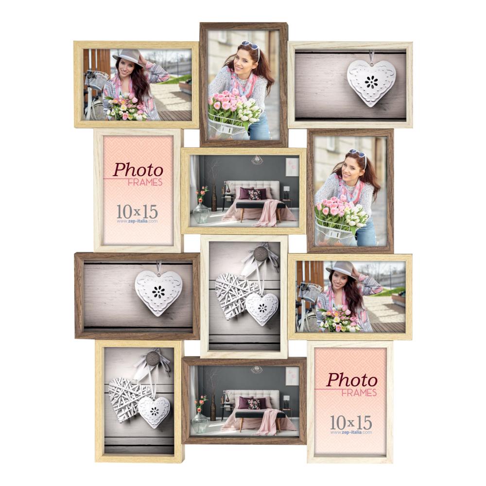 Le cadre peut contenir 12 photos, toutes de taille 10x15 cm, ce qui facilite la création d'un mur photo personnalisé et varié. Avec ses dimensions de 59x44,5 cm, il devient un détail accrocheur sur le mur.