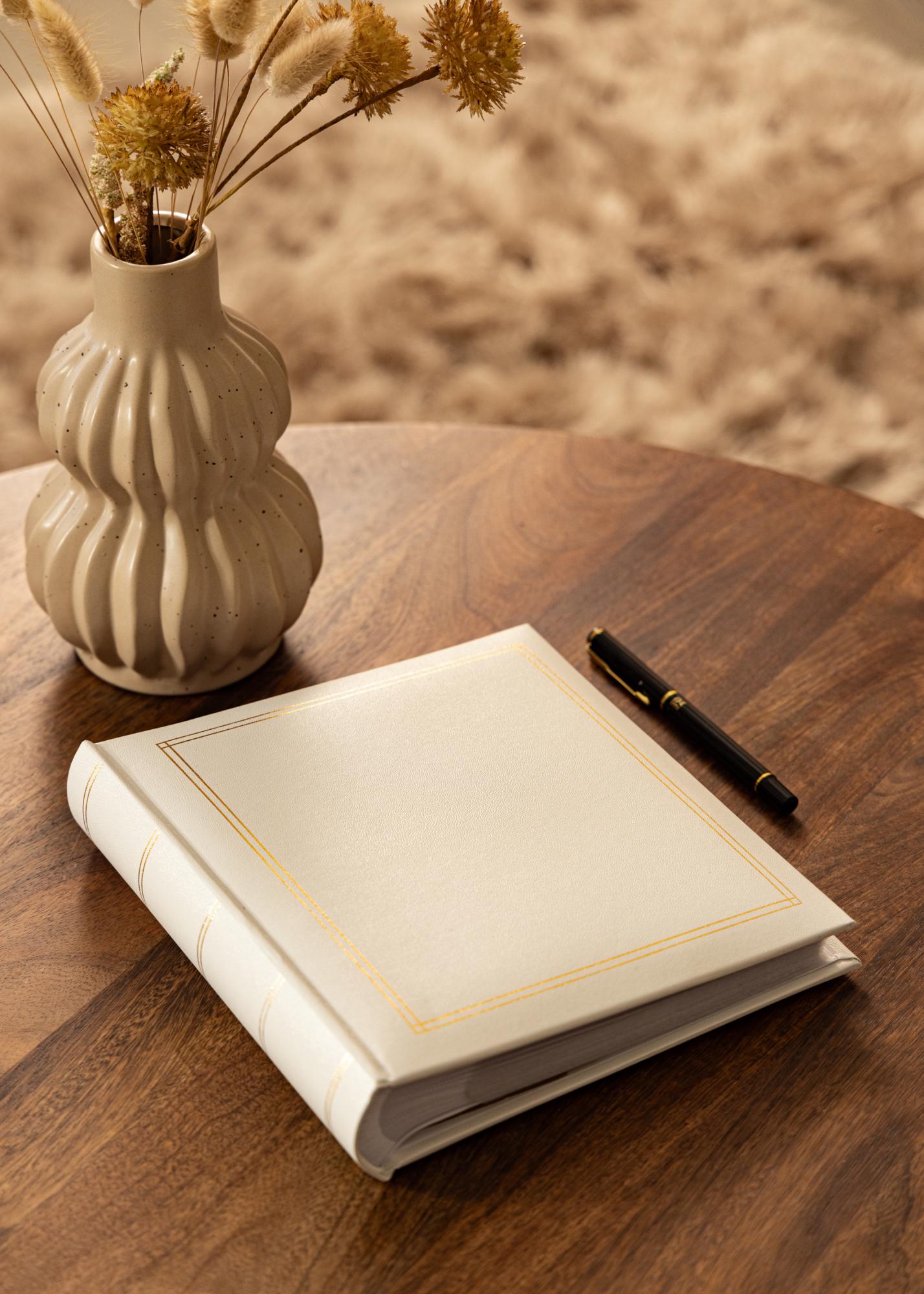 Rangez vos plus belles photos dans un album photo classique et élégant d'un blanc raffiné. Cet album de forme carrée est doté d'une couverture solide et durable avec des doubles lignes dorées sur les bords et au dos. Vous trouverez à l'intérieur des pochettes photos pour 200 photos au format 10x15 cm avec des champs d'écriture lignés pour chaque pochette. Une manière agréable et pratique d'organiser vos souvenirs !