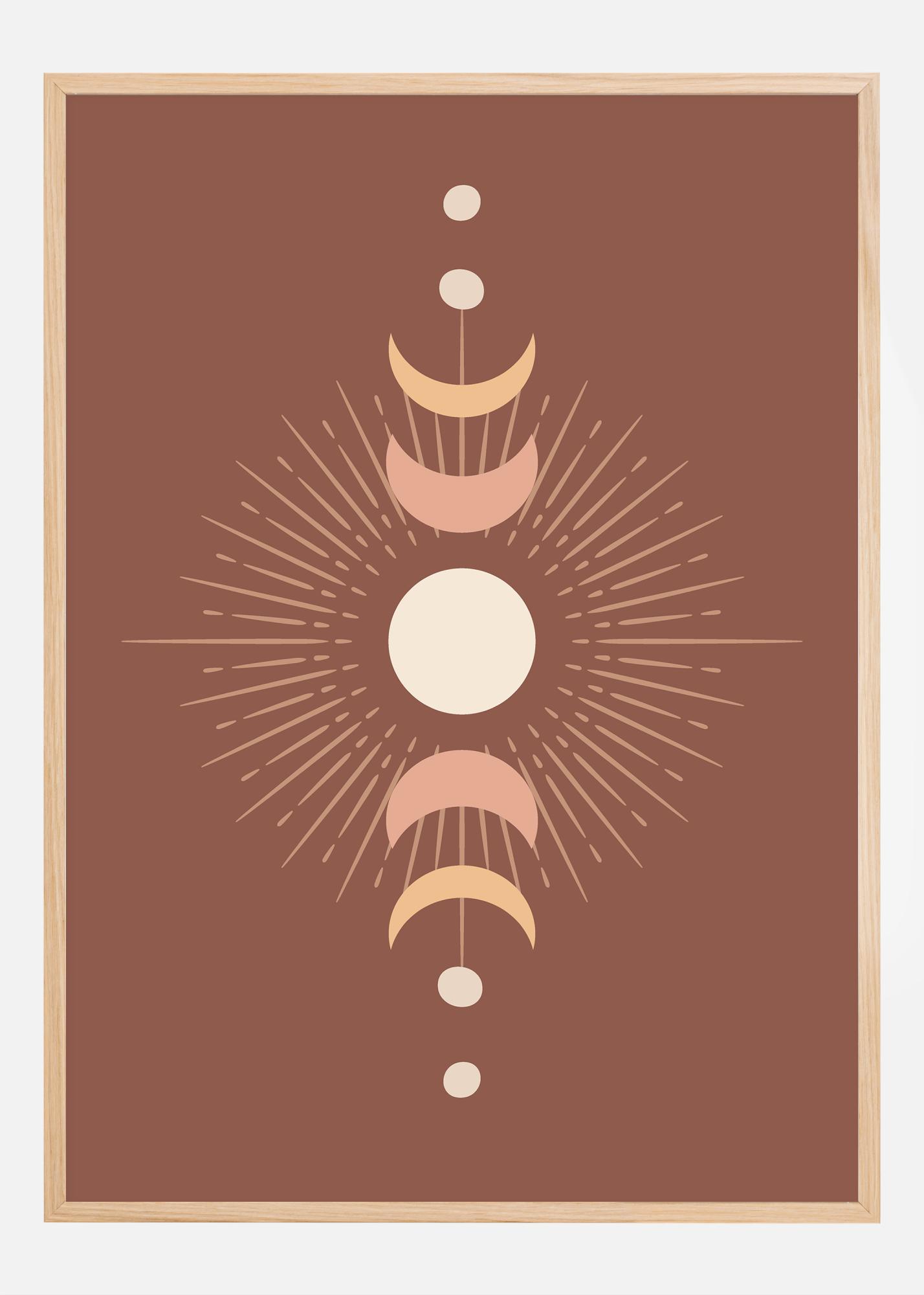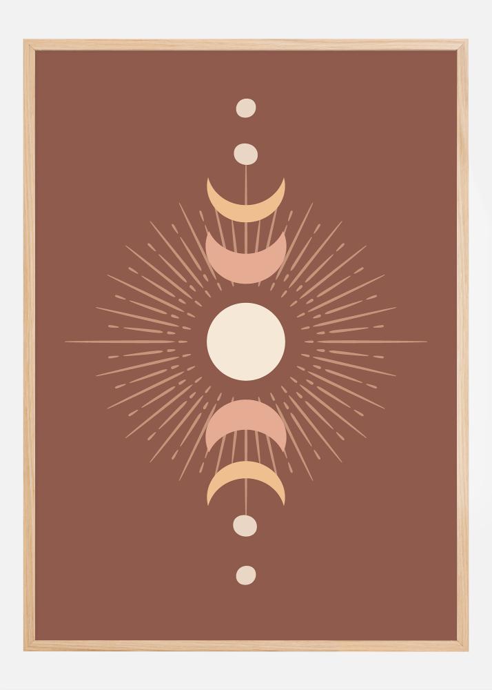 Ce poster élégant, qui dépeint les différentes phases de la lune sur un fond profond et méditatif, procure une sensation d'harmonie cosmique et de beauté intemporelle. Les phases lunaires finement tracées, organisées au centre avec le soleil éclatant en bas, sont un rappel de notre place dans le vaste contexte de l'univers. Sa palette de couleurs chaudes en tons terre crée une atmosphère apaisante et accueillante.