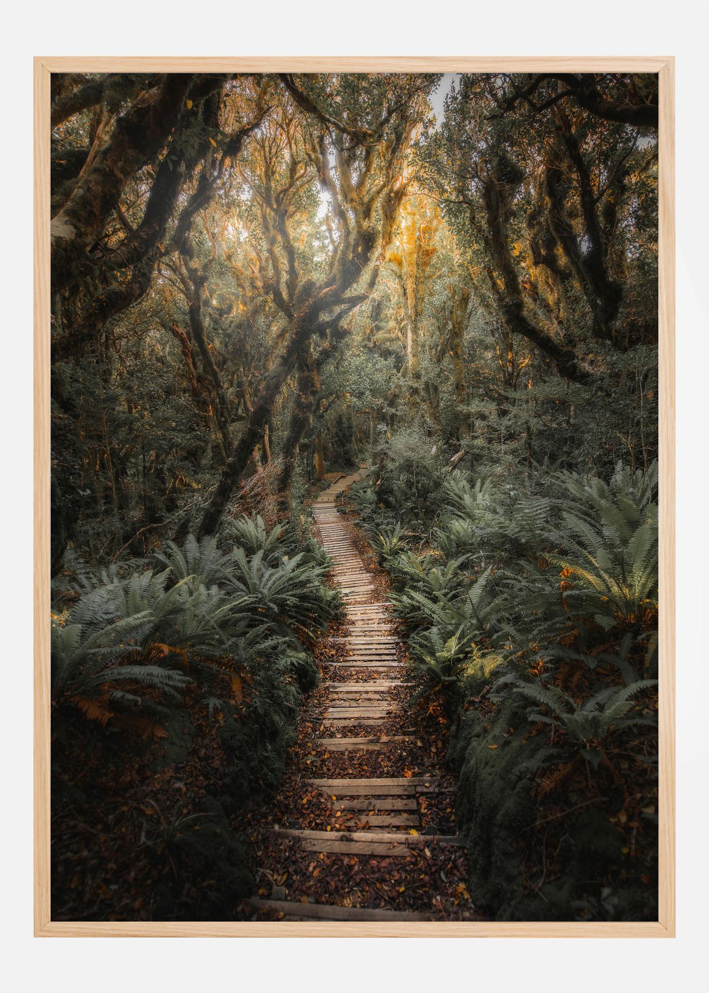 Explorez le royaume enchanté de la nature avec cette affiche captivante qui capture un sentier mystique serpentant à travers une vieille forêt. Cette impression donne vie à un monde où le temps semble s'être arrêté, où les arbres tordus vêtus de mousse et les fougères aux nuances vertes luxuriantes encadrent un chemin étroit de planches de bois. Les rayons du soleil s'infiltrent à travers le feuillage, créant une lueur magique qui met en valeur la beauté de la forêt et la profondeur de son calme feutré. Cette affiche n'est pas seulement une image ; c'est une invitation à parcourir les sentiers de la pensée et à découvrir l'inconnu.