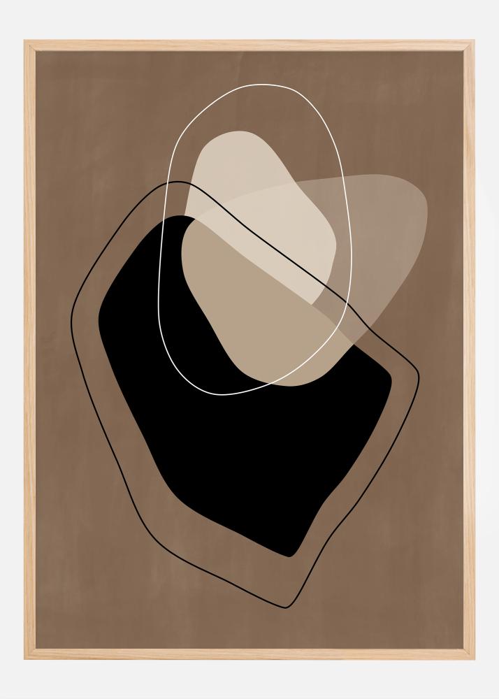 Chaque impression est une étude d'équilibre et d'harmonie, où les tons plus sombres apportent du poids et de la substance, tandis que les parties plus claires offrent légèreté et espace. C'est une affiche sophistiquée qui pourrait être un point de discussion unique ou compléter une collection d'œuvres similaires. Les couleurs utilisées – noir, blanc, beige et taupe – sont soigneusement choisies pour refléter une palette neutre et contemporaine facile à intégrer dans divers styles de décoration. Ce poster offre une polyvalence qui séduit tant les passionnés de design que les amoureux de l'art.