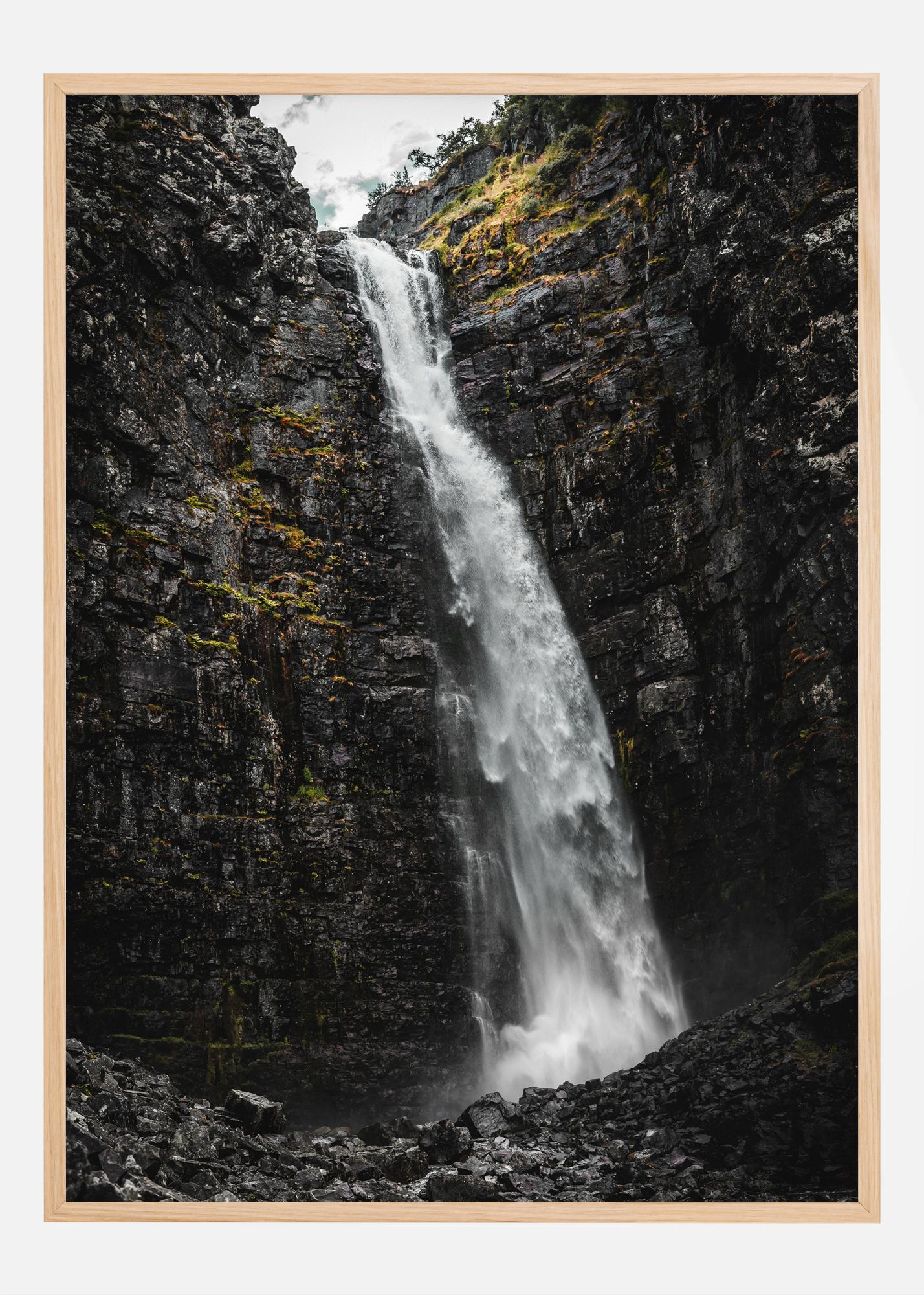 Ce poster suggestif représente Njupeskär, la plus haute cascade de Suède, se déversant de façon spectaculaire le long d'une falaise rocheuse. L'impression montre le mouvement puissant de la cascade et l'eau froide et claire entrant en collision avec les rochers en dessous. La cascade est entourée de rochers sombres, presque noirs, contrastant avec l'écume blanche, tandis qu'une douce verdure s'accroche à la surface des pierres. C'est une affiche qui donne une impression de force brute et de beauté de la nature et constitue un ajout idéal pour tous ceux qui apprécient les merveilles de la nature.