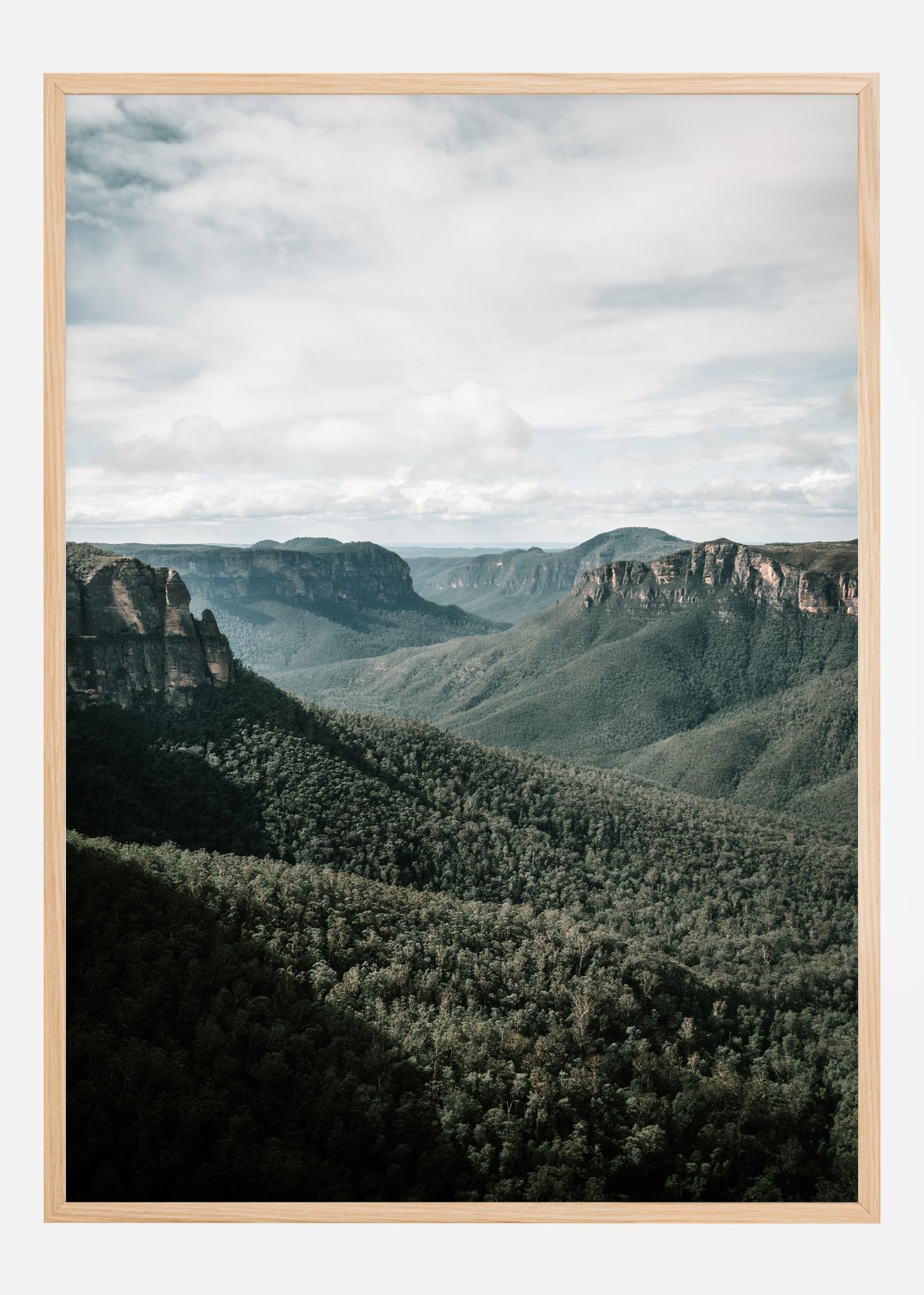 Une affcihe à couper le souffle d'un paysage vallonné. La végétation épaisse couvre les paysages de la vallée aux sommets rocheux. Le ciel nuageux met en valeur les verts tendres de la colline pour créer une atmosphère calme. Pour les amoureux de la nature, c'est l'image parfaite à accrocher dans votre maison.