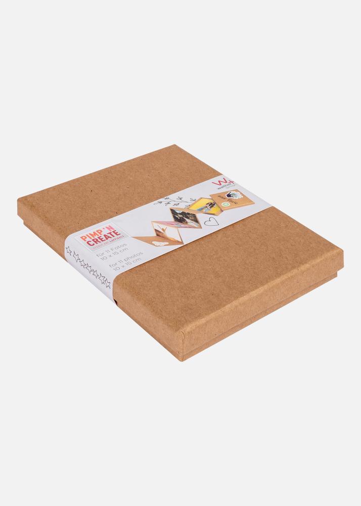 La boîte Leporello de PAC Brun est un album en accordéon élégant conçu pour contenir 11 photos de taille 10x15 cm. La couverture est fabriquée en papier artisanal brun avec un intérieur assorti brun, offrant une sensation classique et intemporelle. Cet album est parfait pour rassembler et exposer vos souvenirs de façon élégante.