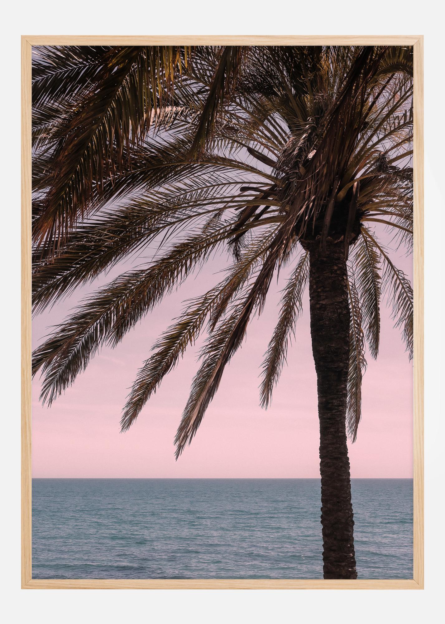 Offrez-vous une évasion vers le paradis tropical chaque jour avec cette affiche présentant un majestueux palmier contre un ciel à l'aube. Cette impression capture un moment paisible au bord de la mer, où la douce lueur rose du crépuscule rencontre le bleu infini à l'horizon, et la silhouette du palmier crée un fort contraste avec le ciel coloré. Parfait pour ajouter une sensation d'été éternel et de chaleur à votre maison ou bureau.