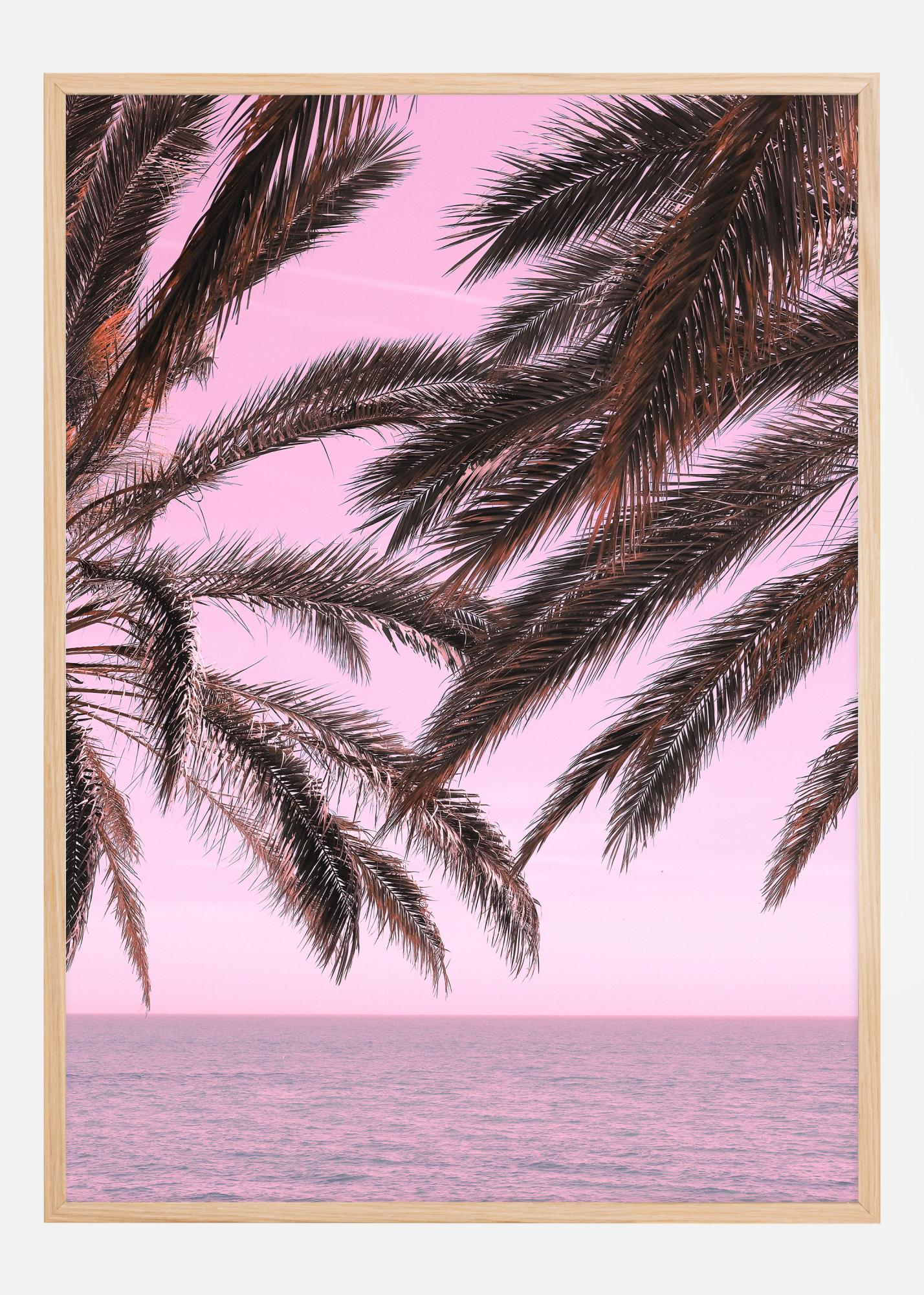 Capturez l'essence d'un coucher de soleil sur la plage avec cette affiche captivante qui représente des feuilles de palmier luxuriantes sur un ciel rose doux. L'impression invite à rêver de climats tropicaux et de journées détendues au bord de la mer. Les feuilles de palmier sombres forment une silhouette élégante qui contraste avec la palette de couleurs apaisantes du ciel et de la mer, évoquant un sentiment de tranquillité et de bien-être.