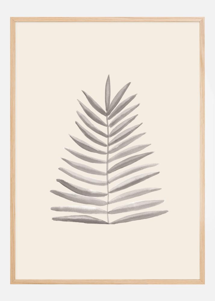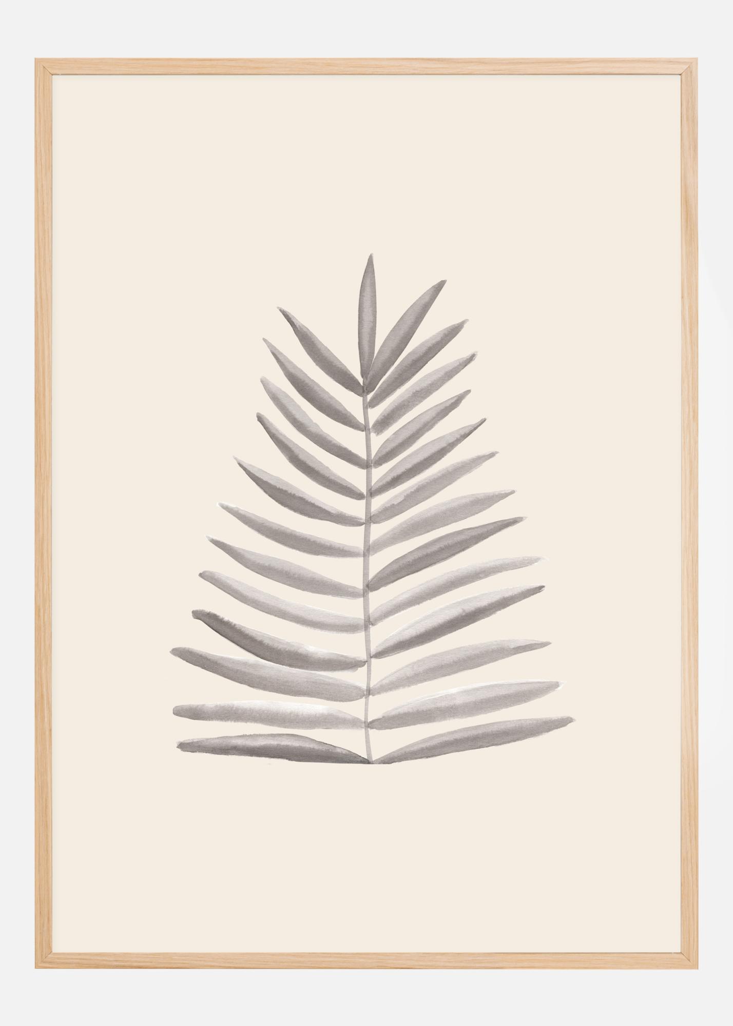 Une simple affiche d'une feuille de palmier. Dessinée sur une surface crème, la feuille se tient droite sur sa nervure. La base de couleur crème met en valeur la petite feuille de palmier brune. Ajoutez cette touche de classe à un mur coloré.