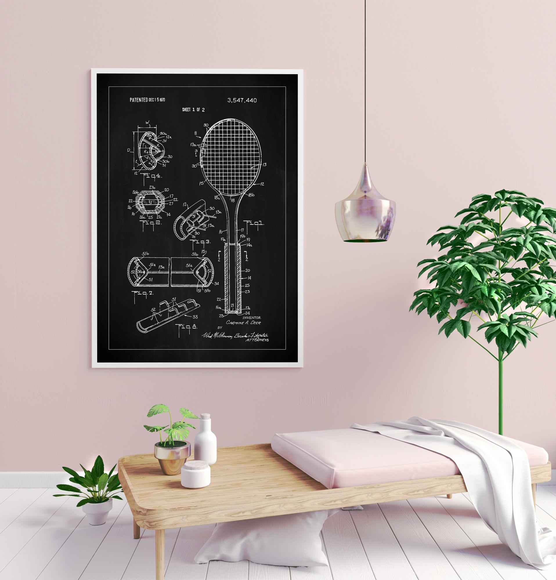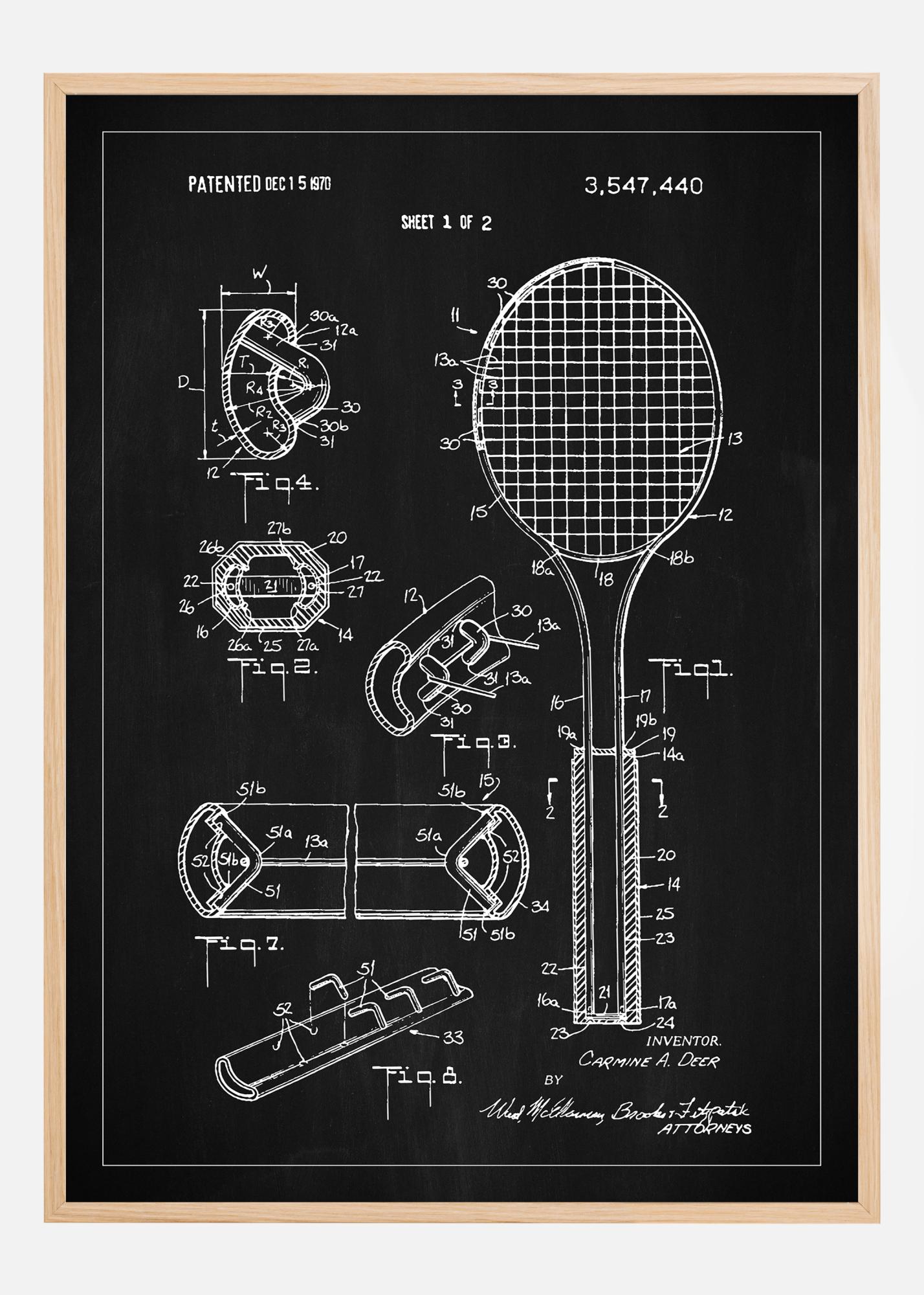 Patent Print - Tennis Racket - Black Poster (21x29,7 cm (A4))