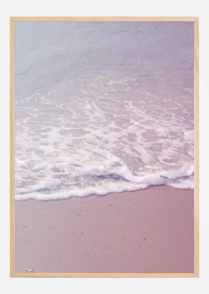 Un étonnant portrait du bord de mer. Lorsque les vagues se brisent sur la plage, une mousse blanche se forme sur le sable. Le beau sable rose et la mer créent une atmosphère estivale. Faites entrer l'été dans votre maison avec cette affiche rafraîchissante.