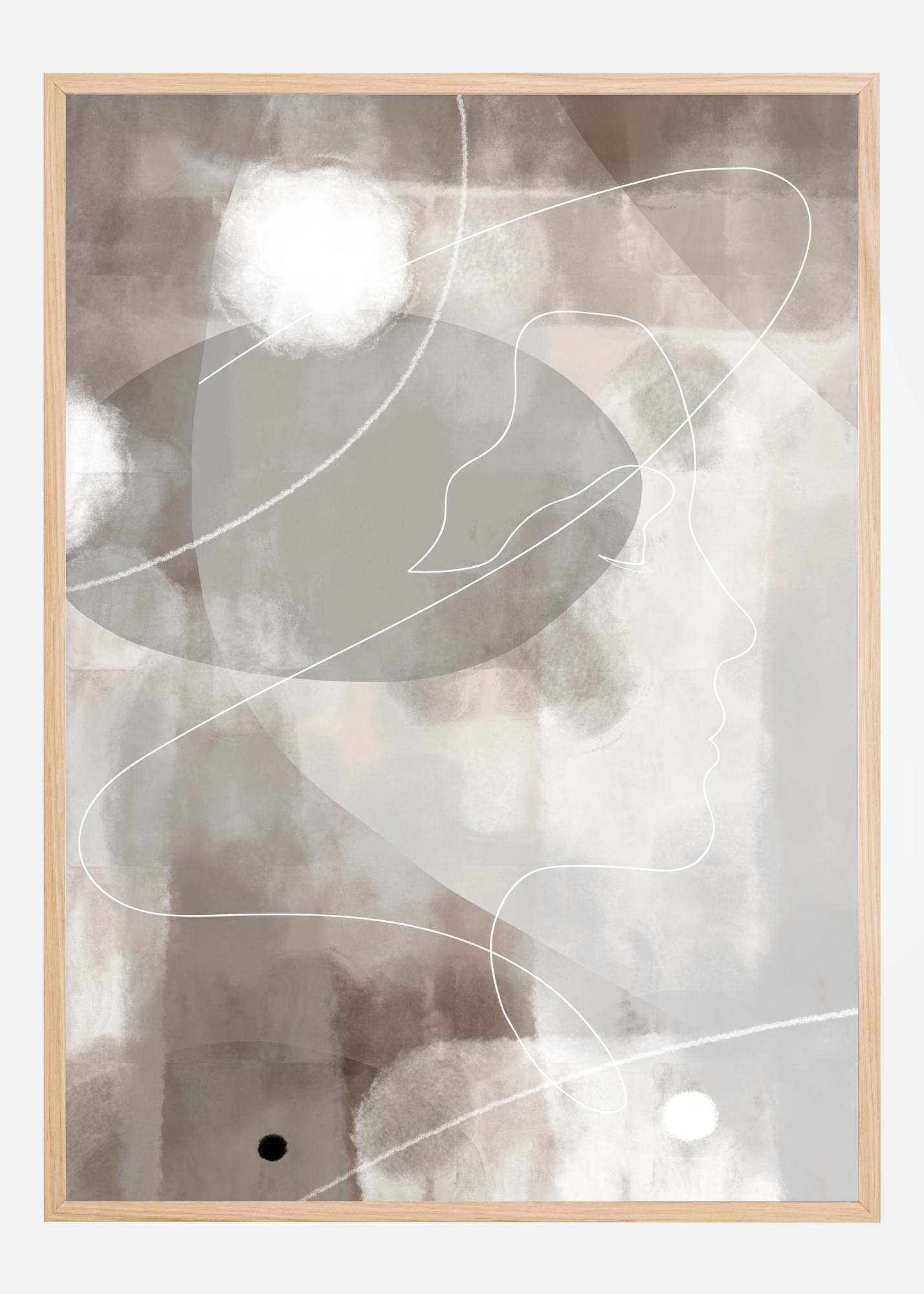 Une œuvre d'art illustrant une femme portant un chapeau. Ce magnifique imprimé de profil a été astucieusement dessiné sans jamais prendre le pinceau de l'imprimé. La silhouette de la femme est posée sur un fond marron clair avec quelques nuages blancs dans la partie supérieure du tirage. Une jolie affiche pour la chambre à coucher d'une femme.
