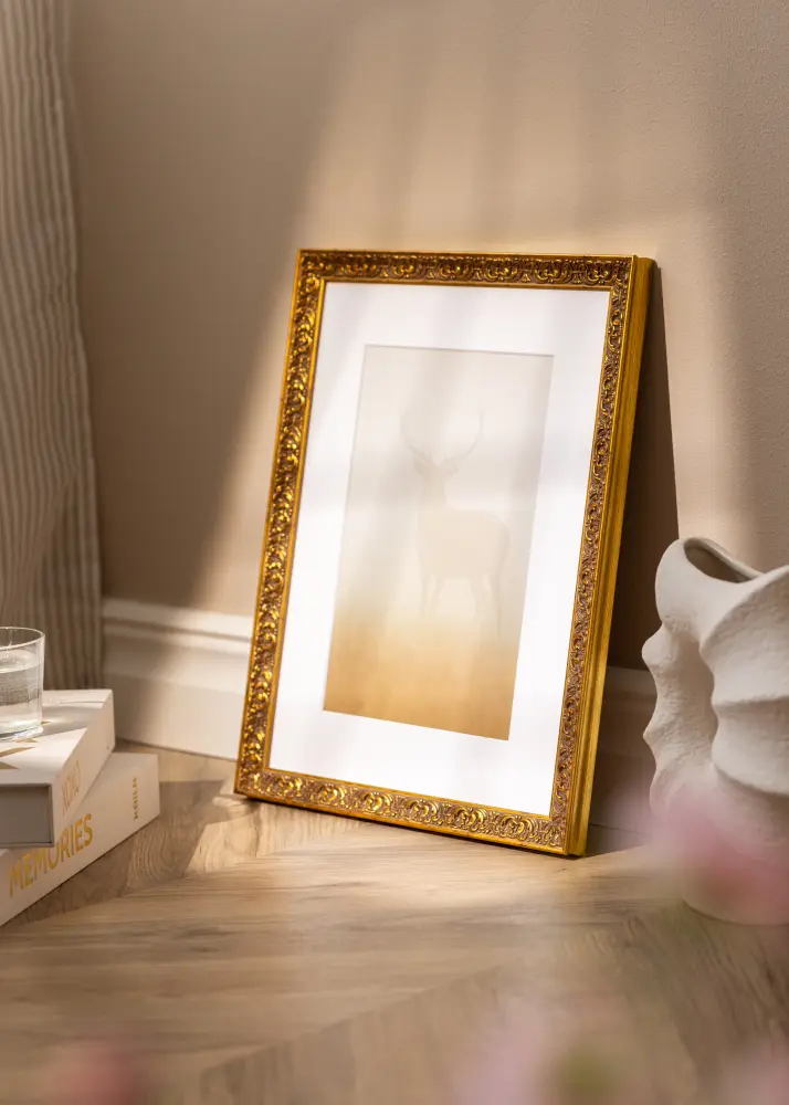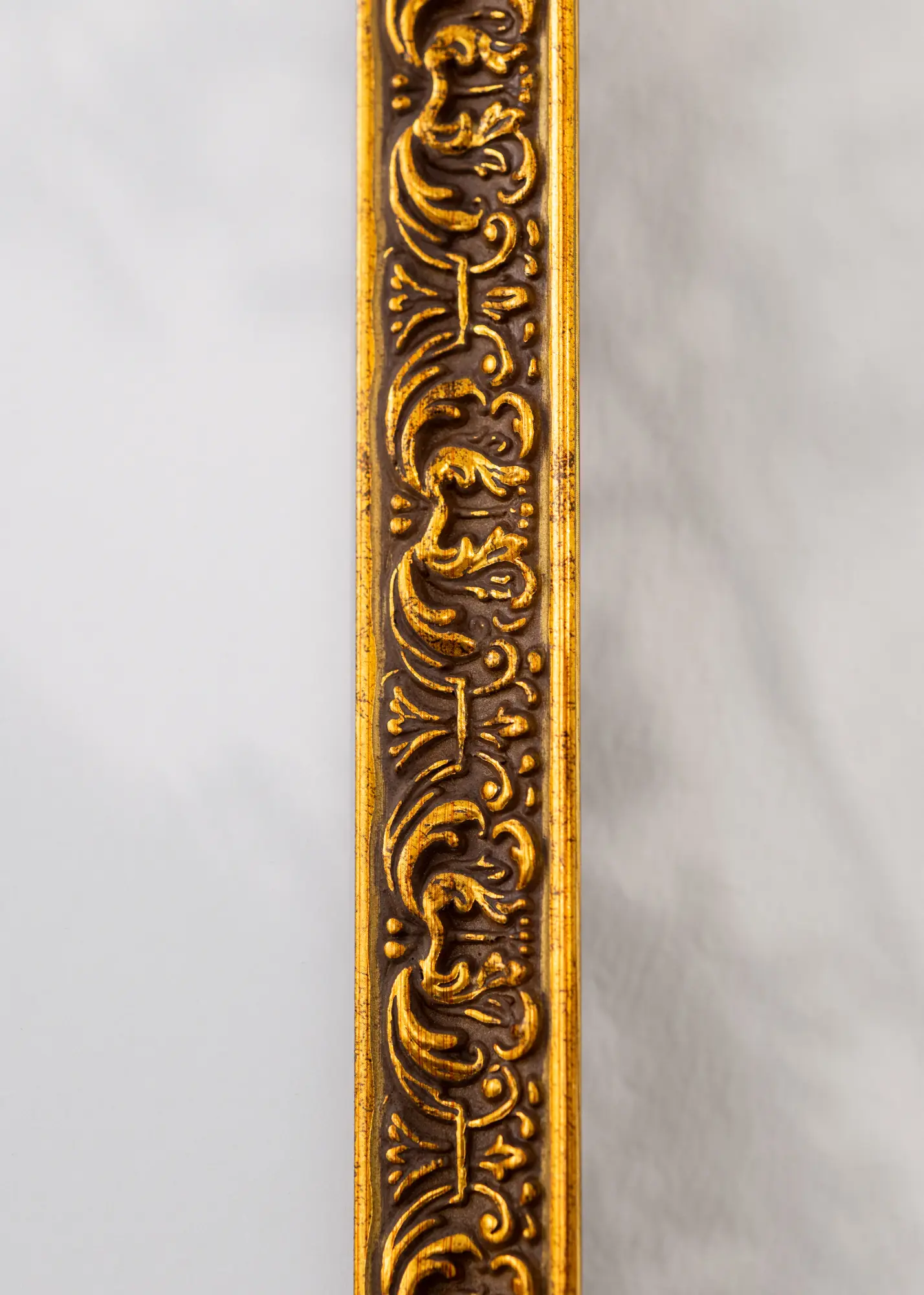 Ce cadre photo élégant en or est une combinaison parfaite de tradition et de luxe. Avec ses détails décoratifs ornés et sa finition dorée antique, il offre un sentiment de beauté intemporelle. Le cadre est idéal pour mettre en valeur des portraits, des œuvres d'art ou des motifs historiques, et son design classique en fait un excellent choix pour n'importe quelle maison.