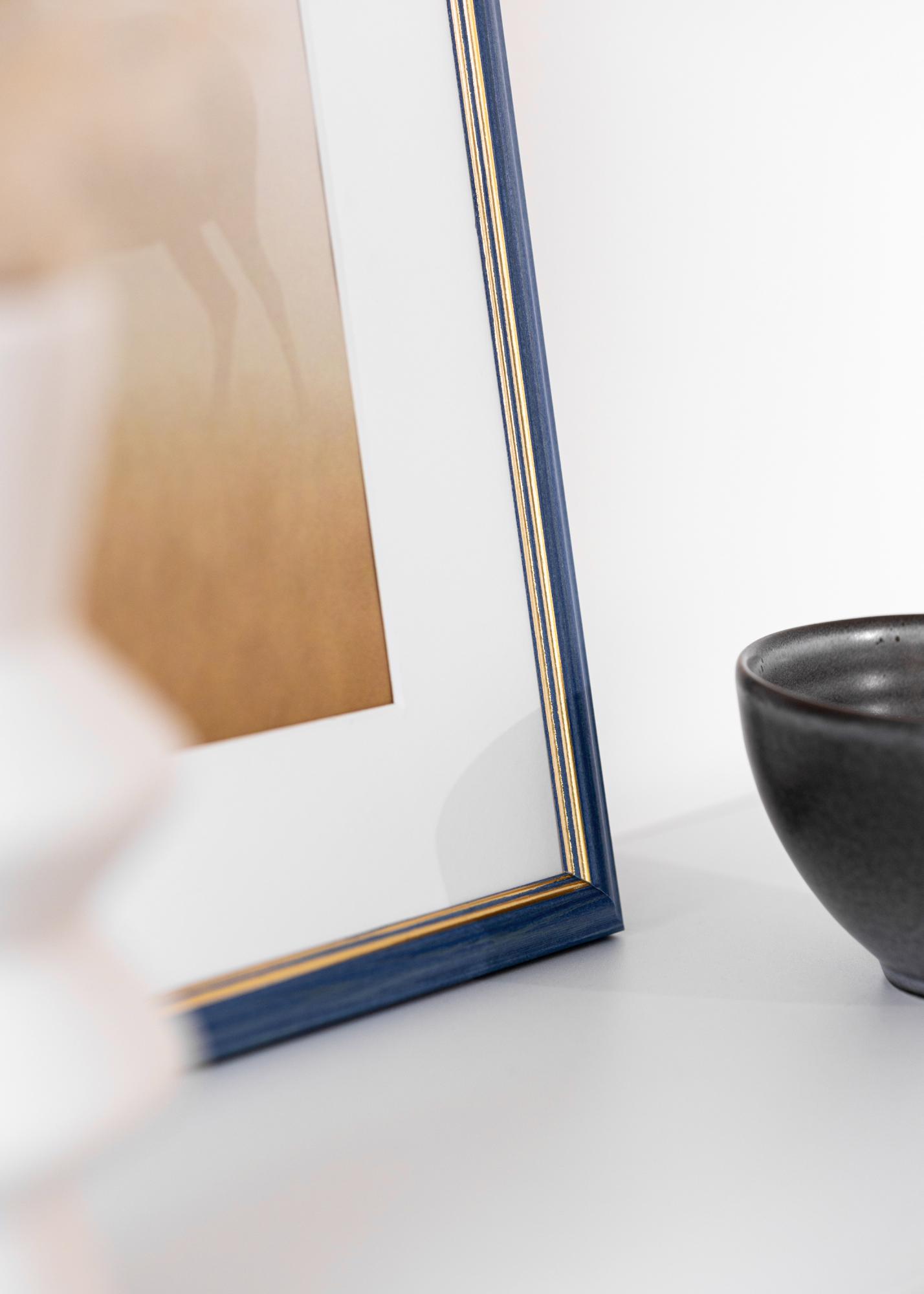 Ce cadre photo élégant dans une teinte bleu profond est une combinaison parfaite de design classique et de fonctionnalité moderne. Avec une taille de cadre de 29,7x42 cm (A3), il est idéal pour mettre en valeur vos œuvres d'art ou photographies préférées. La baguette de cadre étroite, large de 15 mm, avec des détails dorés subtils le long du bord offre une sensation sophistiquée et crée un contraste élégant avec le sujet. La structure en bois est discrètement visible à travers la couleur, donnant au cadre un caractère chaud et vivant.