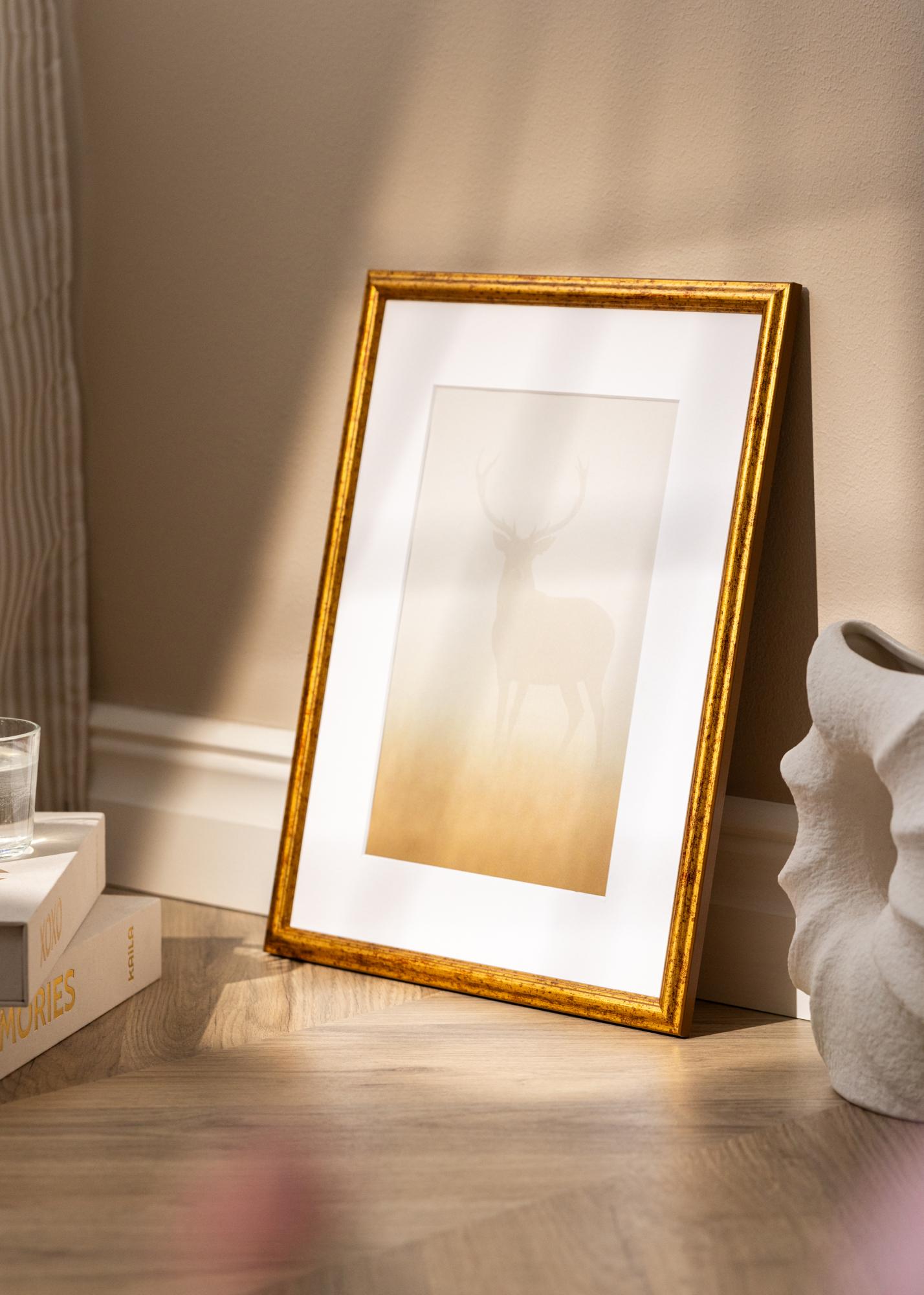 Ce cadre photo élégant en or est une parfaite combinaison de design classique et de fonctionnalité moderne. Avec une taille de 21x29,7 cm (A4), il est idéal pour exposer vos motifs préférés, qu'il s'agisse d'une photo de famille ou d'une œuvre d'art. La finition dorée antique avec une patine subtile donne au cadre un charme rustique qui convient aussi bien aux intérieurs traditionnels que modernes.