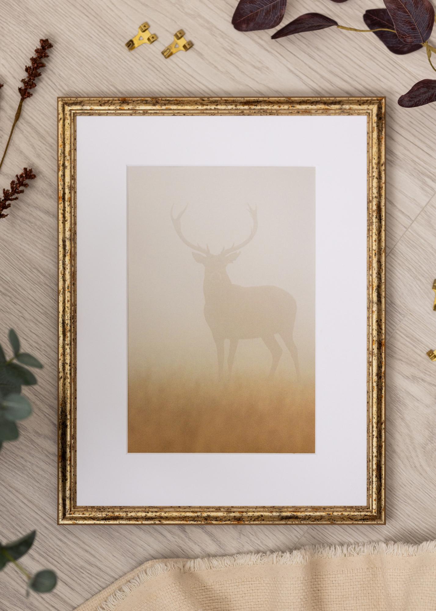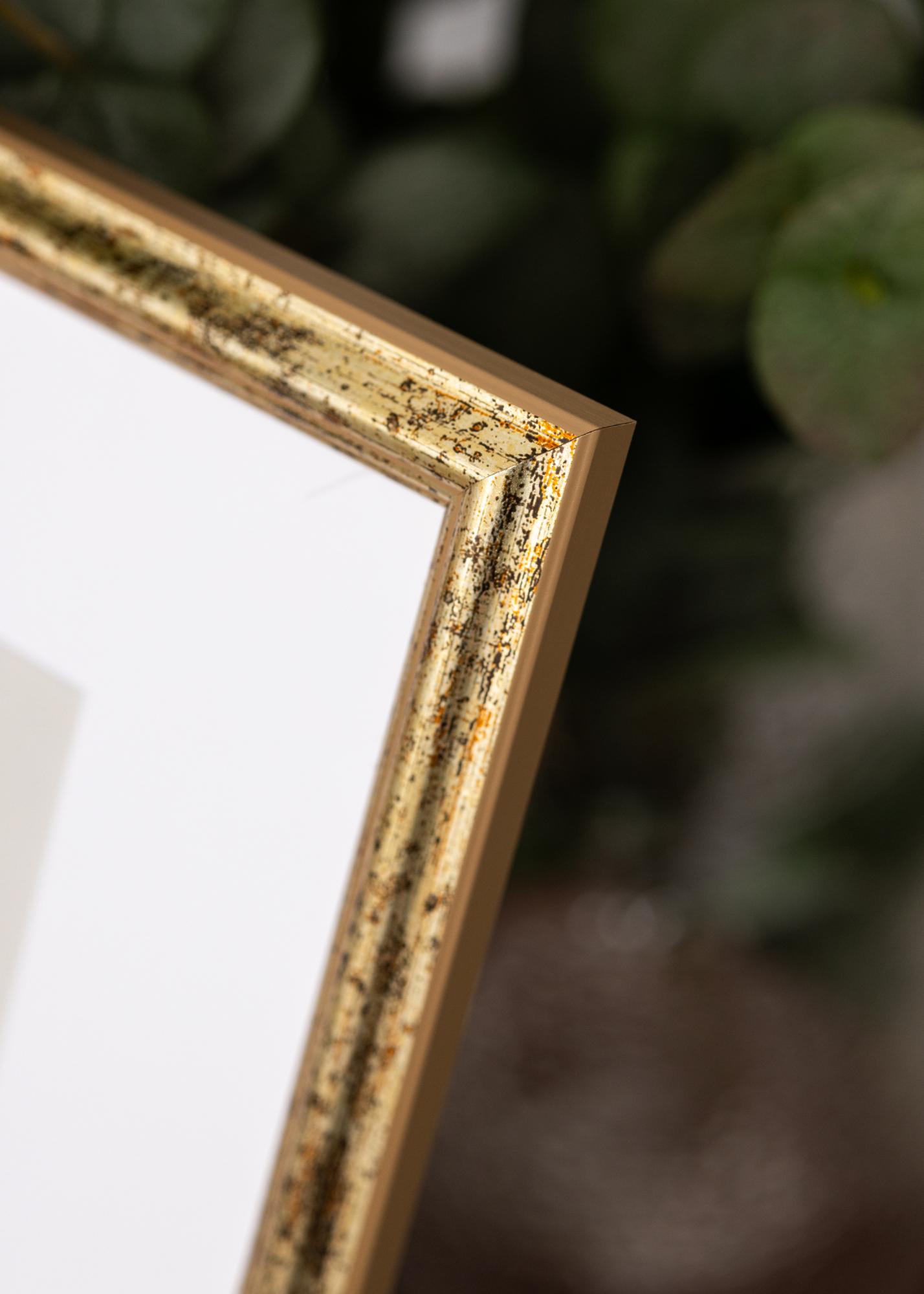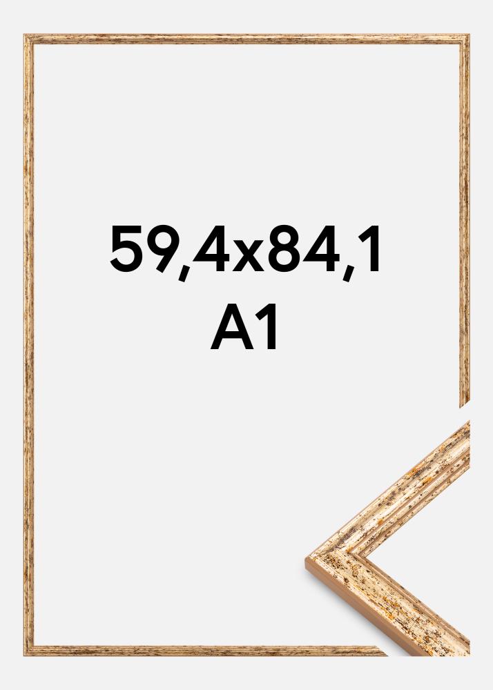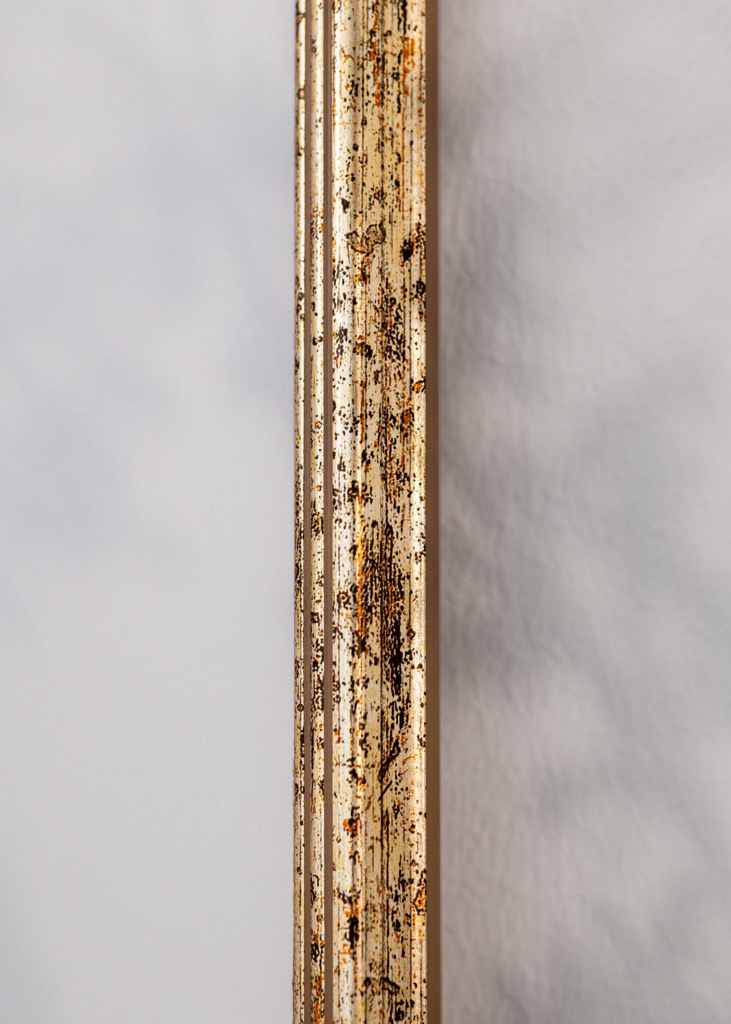 Ce cadre photo élégant en argent est une combinaison parfaite de design classique et de fonctionnalité moderne. Avec une taille de 59,4x84,1 cm (A1), il est idéal pour mettre en valeur vos photos préférées ou œuvres d'art. Le cadre est fabriqué en bois et présente un design inspiré du vintage avec une finition dorée antique et une patine vieillie, ce qui lui confère un caractère rustique et charmant.
