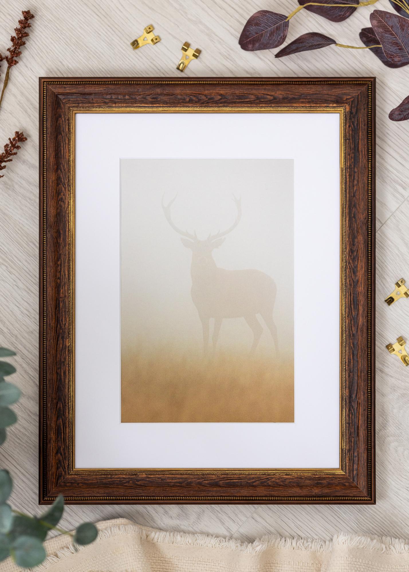 Ce cadre photo élégant de taille 29,7x42 cm est une combinaison parfaite de charme rustique et d'élégance classique. Fabriqué en Italie à partir de bois de haute qualité, ce cadre a une couleur brun foncé avec des détails décoratifs dorés le long du bord intérieur. La structure du bois est clairement visible et offre une sensation chaleureuse et naturelle, tandis que les touches dorées ajoutent une touche sophistiquée qui convient parfaitement aux intérieurs traditionnels et inspirés du vintage.