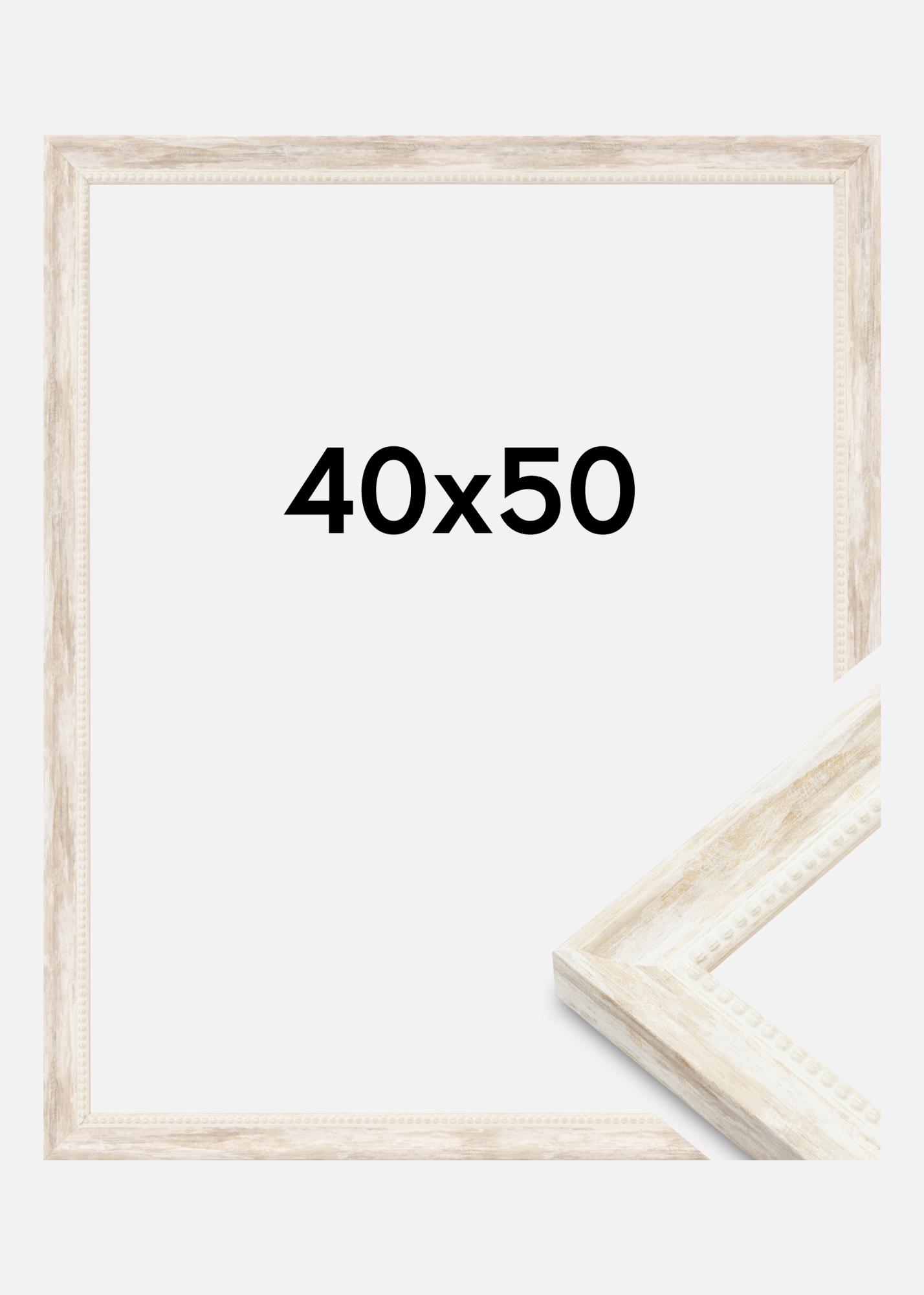 Ce magnifique cadre photo de couleur blanche est une parfaite combinaison de charme rustique et d'élégance épurée. Avec ses dimensions de 40x50 cm, il est idéal pour mettre en valeur vos sujets préférés, qu'il s'agisse d'œuvres d'art ou de photographies. Le cadre présente un bord perlé décoratif le long de l'intérieur, offrant un design classique et détaillé qui convient aussi bien aux intérieurs modernes que traditionnels.