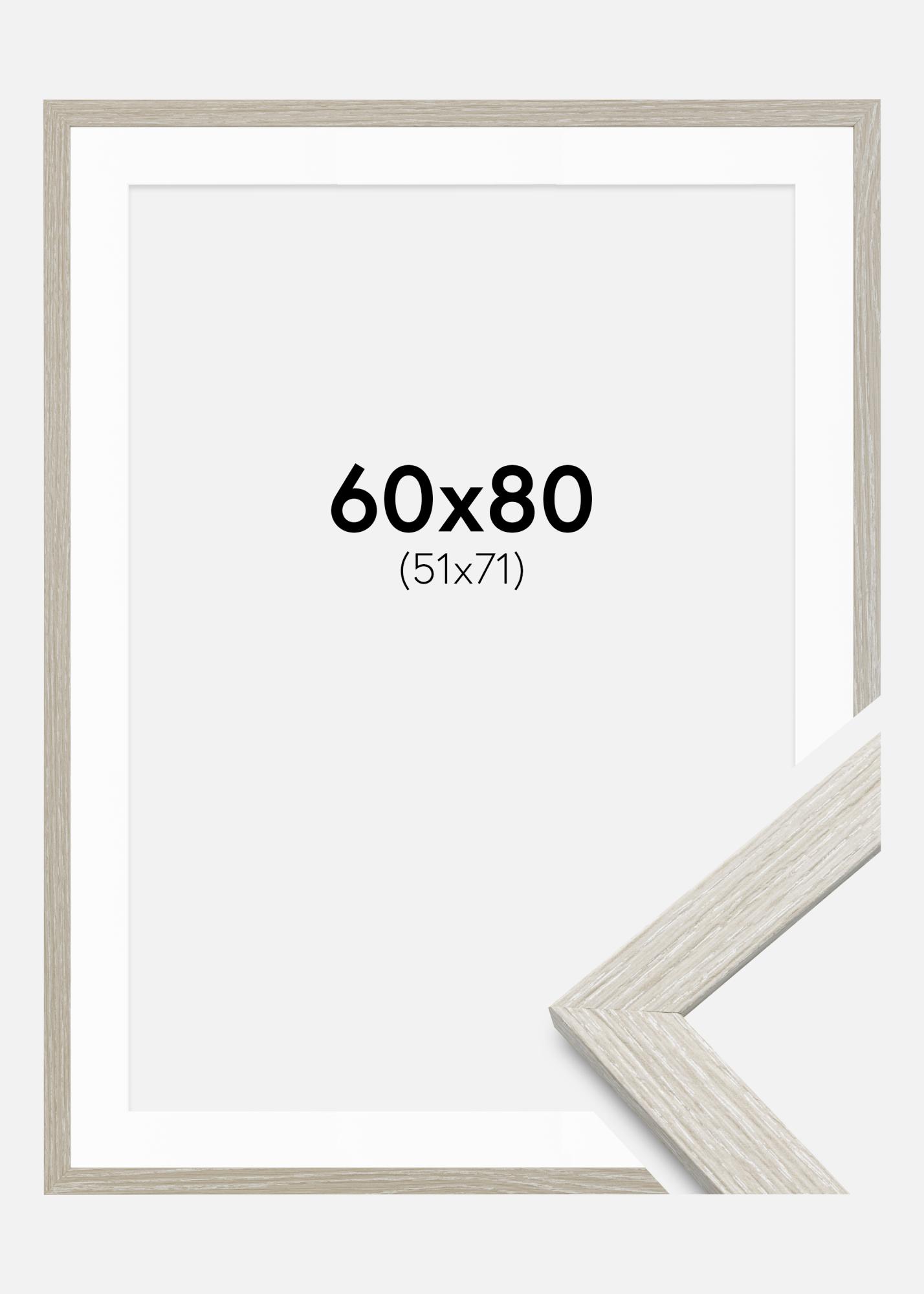 Cadre Stilren Chêne Gris Clair 60x80 cm - Passe-partout Blanc 52x72 cm