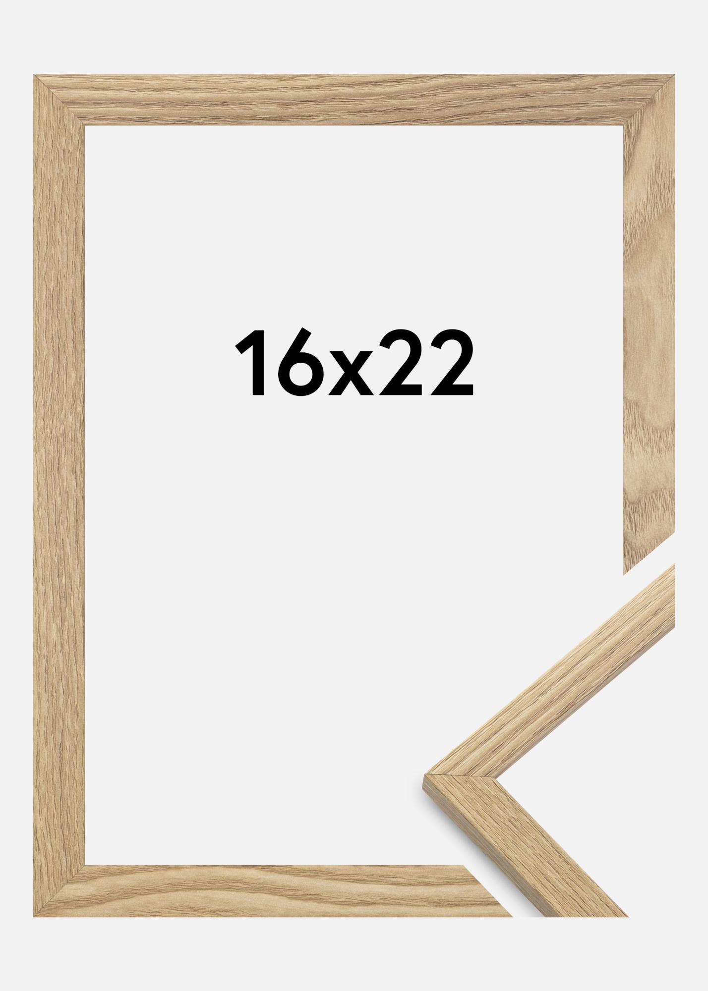 Le cadre, fabriqué en MDF avec placage en aluminium et une surface de couleur chêne est doté d'un mince profil de 14 mm. Il y a suffisamment d'espace pour combiner vos images avec un passe-partout luxueux, grâce à la profondeur intérieure du cadre (profondeur de baguette) de 12 mm.