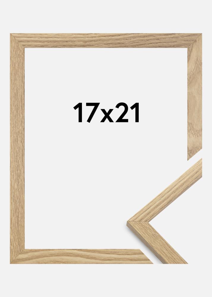 Le cadre, fabriqué en MDF avec placage en aluminium et une surface de couleur chêne est doté d'un mince profil de 14 mm. Il y a suffisamment d'espace pour combiner vos images avec un passe-partout luxueux, grâce à la profondeur intérieure du cadre (profondeur de baguette) de 12 mm.