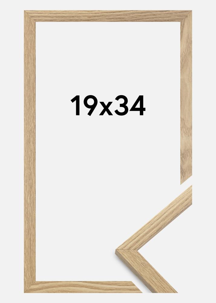 Le cadre, fabriqué en MDF avec placage en aluminium et une surface de couleur chêne est doté d'un mince profil de 14 mm. Il y a suffisamment d'espace pour combiner vos images avec un passe-partout luxueux, grâce à la profondeur intérieure du cadre (profondeur de baguette) de 12 mm.