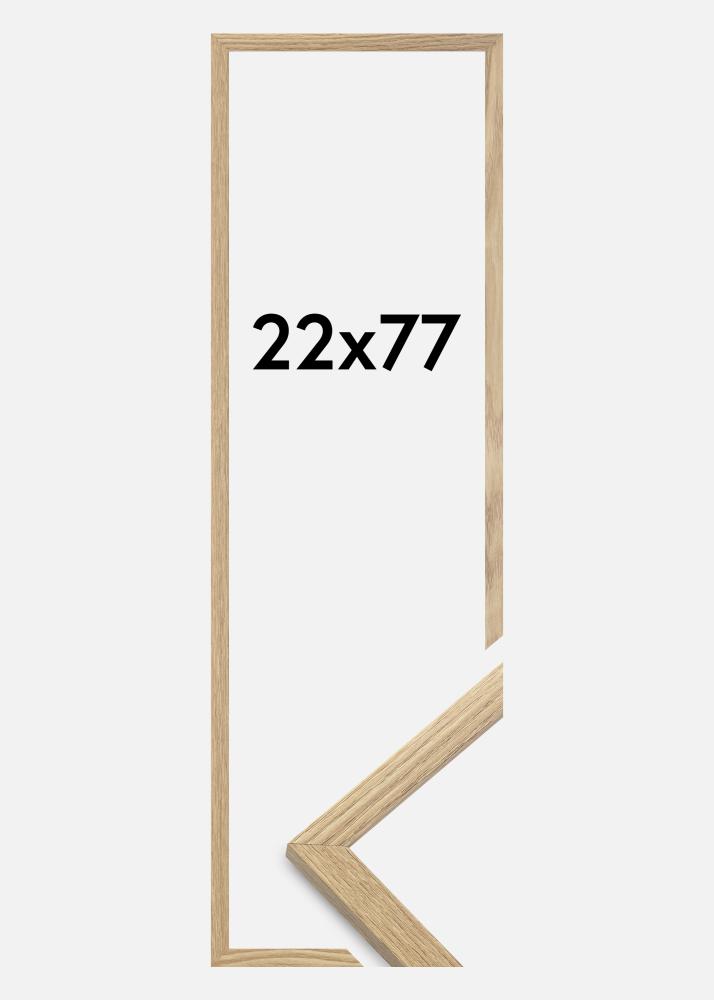 Le cadre, fabriqué en MDF avec placage en aluminium et une surface de couleur chêne est doté d'un mince profil de 14 mm. Il y a suffisamment d'espace pour combiner vos images avec un passe-partout luxueux, grâce à la profondeur intérieure du cadre (profondeur de baguette) de 12 mm.