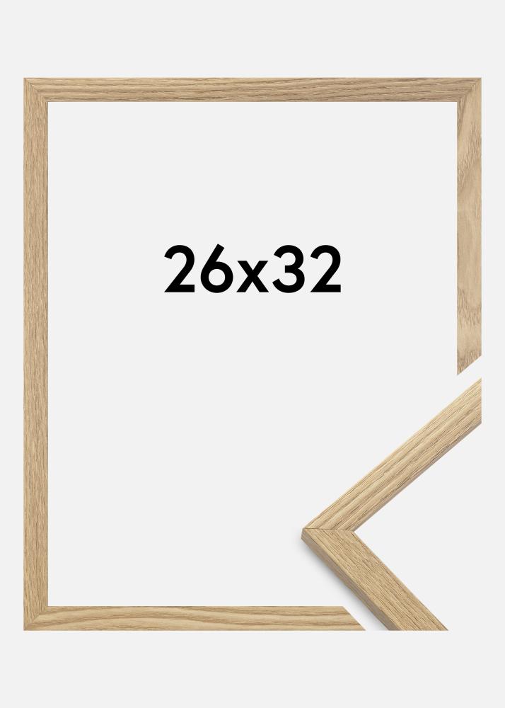 Le cadre, fabriqué en MDF avec placage en aluminium et une surface de couleur chêne est doté d'un mince profil de 14 mm. Il y a suffisamment d'espace pour combiner vos images avec un passe-partout luxueux, grâce à la profondeur intérieure du cadre (profondeur de baguette) de 12 mm.