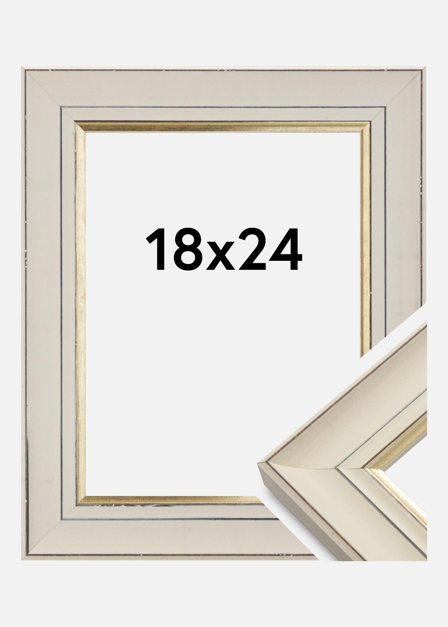 Cadre de style classique à la captivante touche rétro. Ce cadre est doté d'un profil patiné de couleur blanche et d'une belle bordure dorée le long du motif. Avec son design neutre et son choix de couleur, c'est un cadrequi s'adapte à presque tous les intérieurs et à tous les types de motifs.