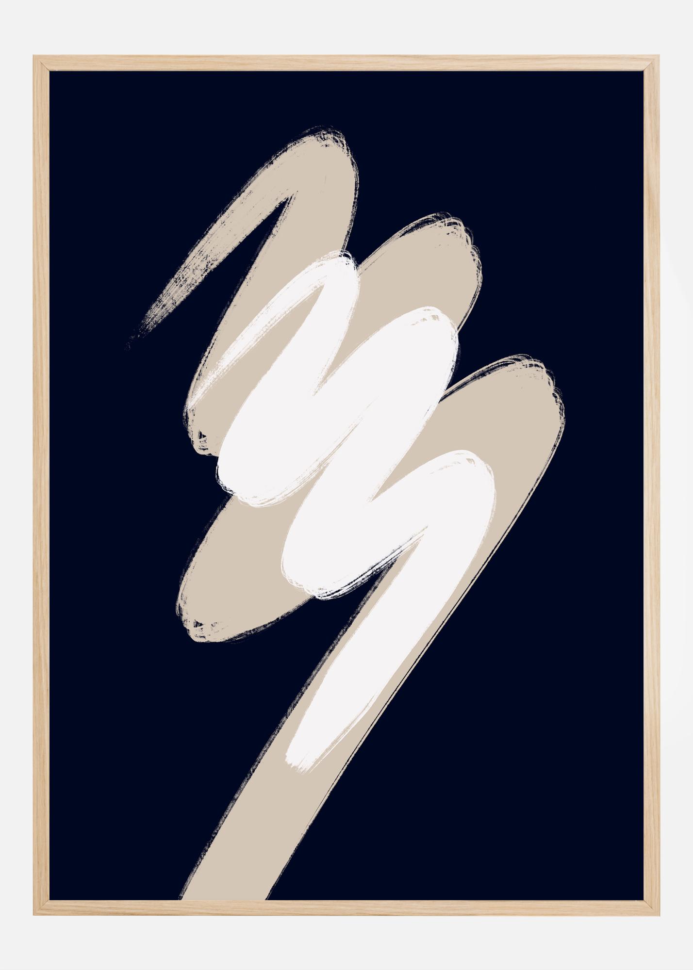 Ce poster abstrait et moderne dégage un sentiment de liberté artistique et de créativité. Les traits de pinceau audacieux en blanc et beige balayent le fond bleu foncé, créant un fort contraste visuel qui capte et retient l'attention du spectateur. Le motif donne une impression de mouvement et de spontanéité, caractéristique de la direction expressive dans l'art abstrait.