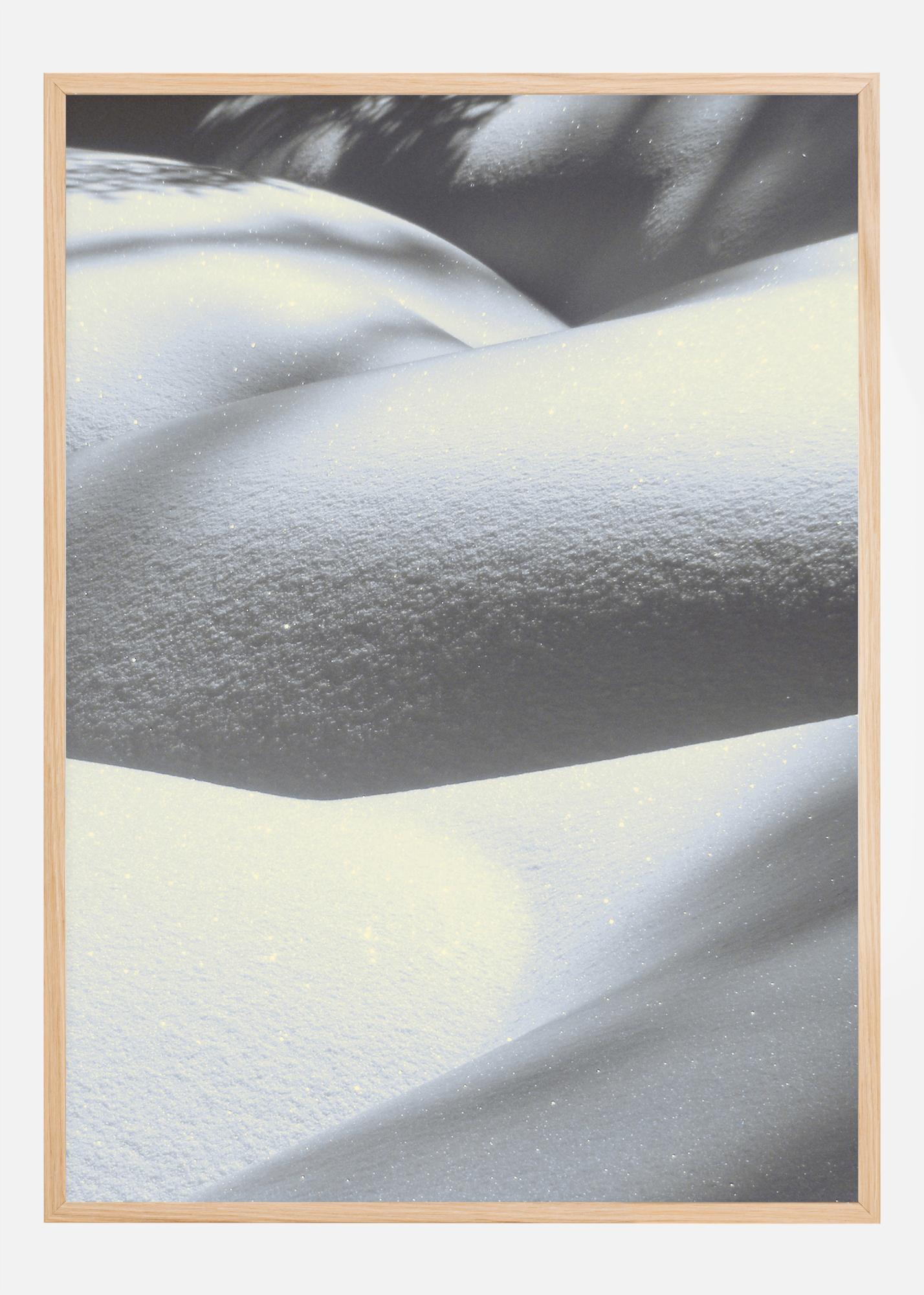 Un poster blanc de neige sur des collines ondulantes. Cette affiche est faite de nuances et de tonnes de blanc et de gris alors que la neige tombe sur le paysage en créant différents motifs et formes. La neige recouvre tout et laisse votre imagination faire le reste.