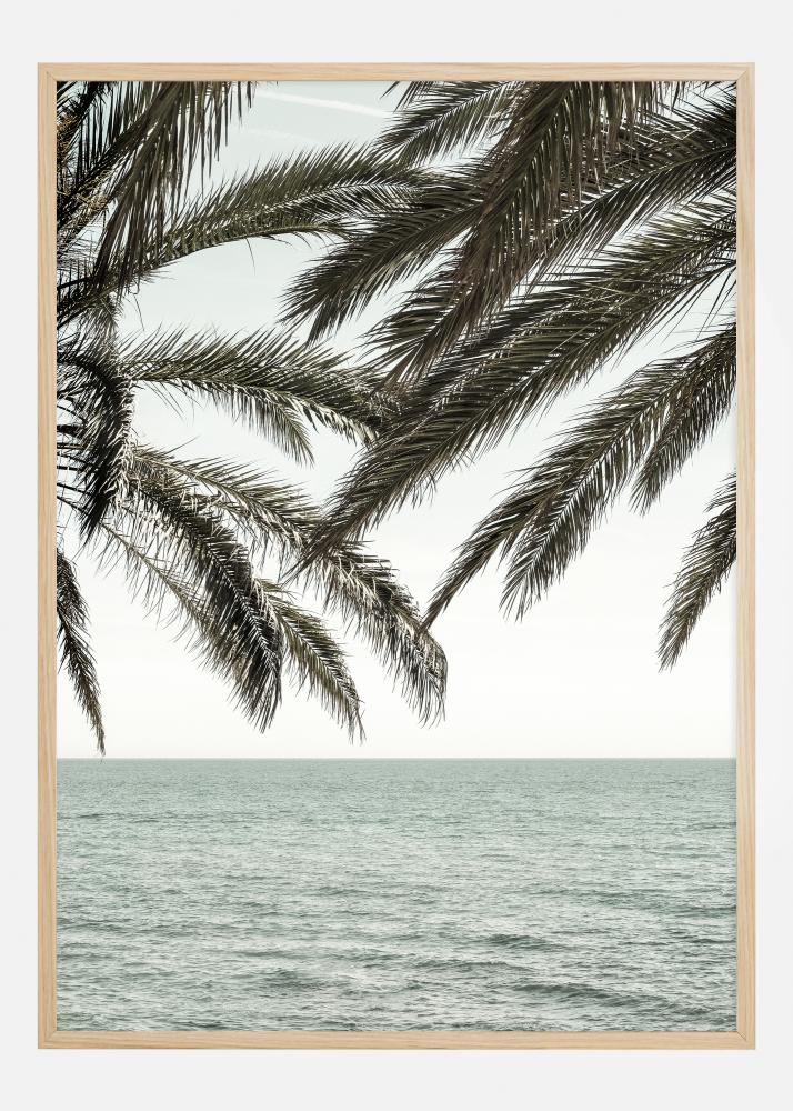 Ce poster apporte un morceau de la sérénité de la vie balnéaire directement chez vous. Les feuilles de palmier encadrent la vue calme de la mer et le ciel au-dessus d'une manière qui capture la beauté unique d'un paysage côtier. La couleur verte apaisante des palmiers contraste naturellement avec le bleu de la mer et la lumière du ciel, offrant une sensation d'harmonie et d'éternité.