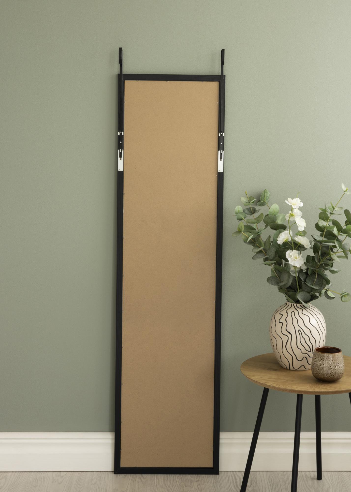Ce Miroir de porte possède un cadre en bois fin et moderne de couleur Noir, qui apporte une touche chaleureuse et naturelle. Sa finition mate rend le Miroir discret tout en ajoutant de la structure et du caractère à la pièce.