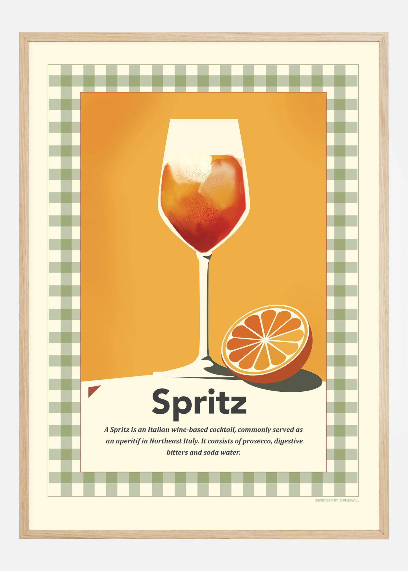 Pour tous ceux qui aspirent à cette sensation de vacances, nous présentons une affiche qui vous transporte directement sur les terrasses ensoleillées du nord de l'Italie. Notre affiche Spritz d'inspiration rétro rend hommage à l'apéritif classique avec une illustration qui rayonne de chaleur et de joie. Les nuances d'orange du verre sur un fond à carreaux verts audacieux donnent une impression à la fois vintage et intemporelle.